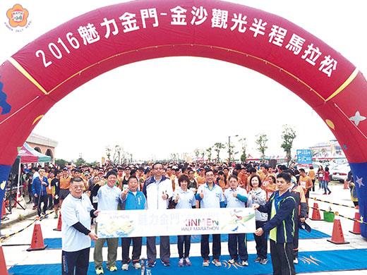 「金沙觀光半程馬拉松」昨(4)日早上7點在金沙文化園區開跑,共有1028位選手參賽,最終半馬男子組冠軍為何盡文,半馬女子組冠軍為翁念禎,路跑男子組冠軍翁瑞駿,路跑女子組冠軍張家妤。本次金沙半馬最大的特色是發放參賽者「旅遊消費券」每人300元,可至金沙各商家消費,盼拉抬商機。 由金門縣政府、金門縣議會指導,金沙鎮公所、金門縣觀光協會主辦,中華民國路跑協會承辦的「金沙觀光半程馬拉松」,昨日清晨在金沙文化園區開跑,共有1028位參賽者報名,包括金門279人、台灣本島591人、大陸120人、外籍人士38人,是今(105)年10月「烈嶼半程馬拉松」人數的2倍。 昨日一大早6點,許多參賽選手陸續來到金沙文化園區集合、暖身,準備7點準時開跑,包括副縣長吳成典、議長洪麗萍、副議長謝東龍、觀光處長陳美齡、金沙代理鎮長王登緯、議員張雲德等人,到場代表鳴槍。 賽事分為半馬組(21公里)和路跑組(10公里),半馬組路線為文化園區、榮湖環湖路、右轉環島東路、陽翟左轉陽沙路、山西左轉光華路一段、英坑右轉陽沙路、左轉光華路二段、馬山勇士紀念碑、左轉沙青路、金沙水庫北側、右轉文化園區。路跑組路線為文化園區、環湖路、右轉環島東路、陽翟、原線折返、文化園區。 跑者們跑在優美傳統聚落群道上,一路經過後浦頭、民俗文化村等;獅山砲陣地、馬山播音站等戰地體驗;每個村落不同特色風獅爺;靈驗的寺廟群等,感覺格外不同。有外地來的朋友跑了一圈下來,直說這裡的空氣好,邊跑還可以看到楓香林,沿途村民更扶老攜幼為跑者加油,濃郁的人情味,真的是很棒的「路跑天堂」。 經過1個多小時的長跑,半馬男子組由何盡文以大會時間01:15:06成績拿下第1名,後續名次為李易勳、黃世昌、李建中、陳漢聲、董育昇、朱致錦、魏裕修、許仁豪、李翔輝、馬立玨、蔡英傑、李奕賢、王家皓、鄒昇陽。 半馬女子組由翁念禎以大會時間01:45:20成績拿下第1名,後續名次為方韻如、楊素羚、蔡婉妮、陳惠芬、林雅麗、林秀琴、陳小黛、王巧倩、呂凌珮、王惠貞、顏慧娟、黃千芳、許玉依、朱家慧。 路跑男子組由翁瑞駿以大會時間39:30成績拿下第1名,後續名次包括何嘉竜、楊志勇、蔡清淵、楊欽富。 路跑女子組由張家妤以大會時間50:32成績拿下第1名,後續名次包括許馨文、陳佩雯、楊素萍、陳梅芳。 本次金沙半馬最大的特色是,為了提升金沙地區商家商機,活絡產業經濟,特地發放參賽者「旅遊消費券」每人300元,可於12月3日至15日持消費券至金沙各商家消費。 近期兩岸關係「急速冷卻」連帶影響陸客觀光人潮,金門觀光協會便以「最美的鄉鎮半程馬拉松」為號召,針對兩岸廣為宣傳,果然一舉奏效,成功在兩岸最喜歡路跑初冬季節期間搶到不少客源。主辦單位也預告,明(106)年預計舉辦場次包括3月5日在金寧、5月21日在金湖、7月29日在金城(夜跑)、9月17日在烈嶼、11月26日在金沙。