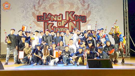 金門舉辦第一屆「Island King熱舞大賽暨3對3對抗賽」,4日下午在金湖體育館舉行,吸引兩岸三地155位舞蹈高手競技舞藝,最終由「Pulinkizeat」獲得排舞組冠軍,「街頭怪獸」獲得3對3熱舞對抗組冠軍。教育處長李文良表示,希望明年繼續辦下去,並增加獎金額度,吸引更多人到金門參賽。 由金門縣政府主辦,OPC舞蹈生活館協辦,昱聲演出工程、金酒公司、昇恆昌公司贊助的「第1屆金門Island King熱舞大賽暨3對3對抗賽」,4日在金湖體育館舉行,吸引兩岸三地多達34組街舞團體、155位舞蹈高手到金門參賽,互相尬舞技,競逐獎金。 今年舉辦第一屆,各地報名踴躍,甚至全國知名IP LOCKERS、Pulinkizeat、The Roguez等職業隊伍和知名舞蹈老師均前來參賽,已將Island King熱舞大賽推上一個高水準高知名度的舞蹈比賽。 Island King熱舞大賽分為排舞組和3對3熱舞對抗組,排舞組共14組參賽,3對3熱舞組共20組參賽,經過一整個下午的比賽,最終排舞組由Pulinkizeat獲得冠軍,帶回8萬元獎金;亞軍IP LOCKERS,獲得5萬元;季軍TOT,獲得3萬元;第4名鐵四帝,獲得1萬元;第5名萌世代,獲得8000元。 3對3熱舞對抗組,由街頭怪獸獲得冠軍,帶回5萬元獎金;亞軍是冠軍是我LOGO,獲得3萬元;季軍是爆震Taiwan,獲得2萬元;第4名是KFC籃球隊,獲得8000元。 教育處表示,金門縣地區性的全國街舞比賽,除提供高額獎金並推廣正當、正向休閒運動及街舞文化並提供愛好街舞者,提供一個公平、公正、公開的競賽舞台,也給予民眾對街舞文化的認知與改觀。此外,教育處為支持金門擁有更好的舞蹈文化和素質,將舉辦的精神與目的並且加入新型元素,創造宗教與流行文化的結合。