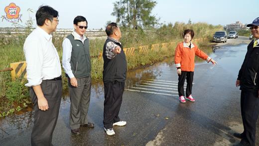 水頭商港港區旁的聯外工程便道,由於道路兩旁時常積水,逢雨過後更是道路變水路,議員許華玉接受里長的陳情,於昨日邀集相關單位前往現地會勘,尋找解決淹水的辦法。 許華玉接受民眾陳情,於昨日下午三時許,前往現地進行會勘,金門縣政府建設處副處長王垣坤、港務處處長張瑞心、金城鎮公所主任秘書黃耿銘、建設課長許世丞等人出席,共同瞭解現況,尋求解決方式。 據了解,這一條便道原先是為水頭商港之建設而設置,以方面工程車輛的進出之用。不過許華玉說,這條便道可能是因為地貌的改變,因此里長跟她陳情指出便道積水嚴重,尤其碰到下雨之際狀況更是慘重。此外根據她的觀察,該條道路除了有不少車輛進出之外,附近也有一些農民在耕作,而且每到接近下午之後,也會有民眾前往散步,因此希望能夠將積水問題有效予以解決。 會後,經過眾人討論決議,針對該條便道的改善規劃,將由金城鎮公所來協助規劃設計後,報請建設處,並由建設處予以經費補助的方式來進行相關的改善工程。
