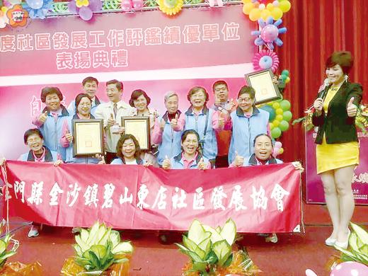 衛生福利部日前於臺大國際會議中心辦理「105年度社區發展工作評鑑績優單位表揚典禮」,本年度評鑑金門縣成績斐然,榮獲縣市政府優等,另金沙鎮碧山東店社區及金城鎮庵前社區分別獲得優等及單項特色獎,為本評鑑制度開辦以來,金門縣獲取之最佳成績,由社會處副處長許美鳳代表縣府率領社會處業務相關同仁及碧山東店、庵前社區發展協會理事長、幹部及志工夥伴前往領獎。 衛福部指出,本年度計有13個縣市政府、36個社區及8位個人接受表揚。其中,直轄市、縣(市)政府部分,計有臺中市政府等7縣市獲得優等,另有宜蘭縣政府等6縣市獲評列甲等。在社區部分,計有桃園市蘆竹區坑子社區等4單位獲得卓越獎。另有臺北市文山區順興社區等7個社區獲得優等獎、8個社區獲得甲等獎及17個社區獲得單項特色獎。而獲得卓越獎的4個社區的理事長及總幹事共8人,也在典禮中獲得公開表揚。 衛福部說明,社區是政府落實政策最重要的業務推動管道,也是最基層的草根力量。為輔導社區發展協會健全組織,強化福利服務功能,積極投入社區各項建設,衛生福利部將全國分南、北2區隔年辦理社區發展績效評鑑,各地方政府及社區無不全力以赴,爭取最佳成績。 而每一個參與評鑑的社區都是在社區發展工作上績效斐然的社區,且係經過公所、縣市政府的初評、複評,才能被推薦參與這項評鑑。歷時2個月的書面與實地評審訪視,在競爭激烈的社區評鑑中能夠脫穎而出獲得中央的表揚,對社區而言,這是無比的榮耀與肯定,也能擴散社區發展工作成果,促進社區發展工作效能的提升與精進。 社會處甯處長表示,自縣長陳福海上任後,十分重視及支持各項社區發展業務之推動,本次社區發展工作評鑑成績豐碩,獲得中央的肯定,是社區及縣府跨局處合作達成的成果,今後縣府仍會繼續全力支持,希望更多社區投入行列,讓社區發展工作朝向自主、活力、幸福、永續的目標邁進。