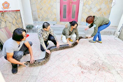 新湖漁港驚見大蟒蛇!28日中午,民眾開車經過市港路通往新湖漁港的下坡路段,突然發現一條372公分長、37公斤、約20公分粗的大蟒蛇爬過路中央,民眾嚇得趕緊報案;據了解,這尾大蟒蛇是金門自99年開始研究蟒蛇以來,發現過的最大隻蟒蛇。且28、29兩天在金門地區就陸續發現3尾野生蟒蛇。 28日約中午時,金湖消防隊接獲民眾報案,指稱市港路要通往新湖漁港的下坡路段,有一條大蟒蛇,金湖消防隊趕緊派人去查看。到了現場,發現一條大蟒蛇在路邊水溝裡,估計約3公尺長、蛇身粗約直徑20公分、重量約20幾公斤;由於重量太重,消防隊員搬不動這條大蟒蛇,還請路過民眾幫忙,總共要4個人合力,才有辦法把這條大蟒蛇搬進籠子。 消防隊員轉述,報案的是一對夫婦,開車經過該處,突然眼見這麼大一條大蟒蛇在路上爬,嚇個半死,趕緊報案。消防隊員研判可能是因為前幾天都下雨,昨日出太陽,大蟒蛇出來「放風」覓食,沒想到就被民眾撞見。 消防隊捕獲該大蟒蛇後,轉交給建設處,農林科派員接手後請金門縣野生動物救援暨保育協會獸醫協助量測,該蟒蛇體長372公分、體重37公斤、雌性,是金門自99年開始進行蟒蛇相關研究發現的最大隻蟒蛇,不過由於冬季溫度過低,牠並無太大的活動能力。未來可能交由畜試所或台灣動物園收養。 除了這隻在新湖漁港發現的大蟒蛇外,28日也有民眾在山西的田埂上發現一隻緬甸蟒,加上29日也有民眾在山后沙灘上發現蟒蛇,總計2天內就發現3隻蟒蛇。 縣府強調,依近年農委會林務局與縣府相關研究及通報資料顯示,金門由於四季氣候變化強烈,春夏兩季的緬甸蟒在夜間移動,秋冬因氣溫過低,蟒蛇會在白天出末並在花崗岩石等空曠區域吸收陽光熱能,反而有較高的通報率,出現均屬正常現象,民眾不必恐慌。 農林科強調,金門受限於氣候與食物量,370公分已是蟒蛇生長極限,這幾年的300公分以上的通報紀錄數量不多,民眾常因恐懼不自覺把體積放大,另冬天的蟒蛇活動力極低,中午出來日光浴就被抓走,甚至變成「補冬」的食材,由於野生蛇類常有寄生蟲,且肆意捕捉野生動物有違反野生動物保育法之虞,提醒鄉親若在野外發現緬甸蟒可聯絡縣府處理,另由於這隻蟒蛇個體較大,縣府將予以收容,另評估交由畜試所供展示教學或交由台灣相關單位等方式處理。