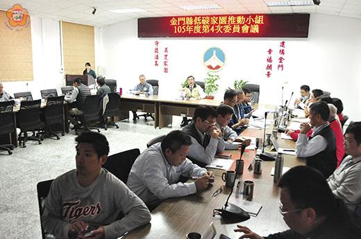 「金門縣低碳家園推動小組」105年度第四次委員會議於昨天召開舉行,由副縣長吳成典主持,縣府參議許寬及各相關單位人員出席與會。在會議中,除討論歷次會議事項辦理情形、建置金門低碳島計畫執行情形說明和進行兩項專案報告外,金門縣低碳島自治條例已奉行政院環保署於今年十一月中核定,請各相關單位儘速完成低碳自治條例16條子法之訂定,並送行政院法規委員會審議。 在低碳家園推動小組委員會議中,針對自行車租賃系統建置與管理、生質能汽電共生廠、電動公車、老舊纜車汰換及綠色運具等歷次決議項進行討論,決議解除列管或是持續列管追蹤,吳成典表示建置金門低碳島計畫是重要方向和目標,帶動金門的發展,並強調開會要有實質效益,決議事項執行若沒有成效,就要繼續追蹤,並說工作可以委外,但責任不能委外,應考核執行成果。 環保局報告建置金門低碳島計畫執行情形說明指出,今(105)年度各局室共提列三十九項執行計畫,包括金酒低碳園區旗艦計畫(六項)、資源循環與區域生質能中心旗艦計畫(十五項)、綠能與低碳運輸系統旗艦計畫(十一項)、社區改造新建與低碳建築旗艦計畫(四項)、烈嶼零碳旗艦計畫(一項)、低碳樂活推動計畫(十二項),截至上個月底止,編列執行經費約百分之九十一點二。 另,環保局也在會中進行「金門縣電動二輪車推動成果」專案報告,以及金酒公司進行「生質能汽電共生廠」設廠評估說明的專案報告外,至於請各單位配合事項包括下列各項: 一、金門縣低碳島自治條例已奉行政院環保署於今年十一月中核定,請各相關單位儘速完成低碳自治條例16條子法之訂定,並送行政院法規委員會審議。 二、請各單位確實依照建置金門縣低碳島計畫內容爭取或編列相關執行經費,如可向中央申請計畫者,以爭取中央經費補助為原則。 三、配合金門縣低碳島計畫滾動式檢討原則,各局處單位應適時檢視「建置金門縣低碳島計畫」內核定推動低碳措施具體做法經費需求,以符合計畫經費達標率;如需修正者 ,應提報秘書單位彙整,並於中央層之推動小組會議提出討論。 此外,請各單位於明(106)年一月三十一日前,提報106年金門縣低碳島相關計畫予秘書單位,以利後續執行情形月彙整。