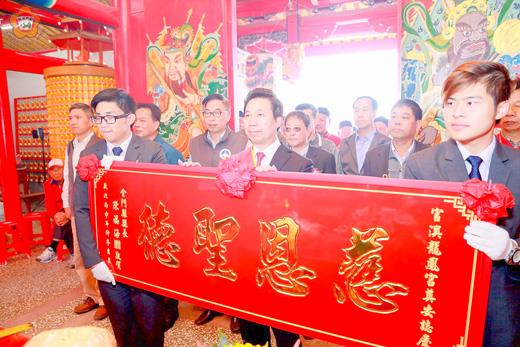 官澳龍鳳宮於十一月二十九日及三十日舉行奠安大典,縣長陳福海率一級主管與會,並進行獻匾等儀式,同時向龍鳳宮諸神上香致意、敬獻爐敬金,共同焚香祝禱祈求國泰民安、風調雨順。 縣長陳福海是在二十九日早上,率領秘書長、社會處長甯國平及縣府一級主管,前往官澳龍鳳宮參加奠安大典,並主持獻匾等儀式,一行人受到官澳宗親的熱情歡迎,眾人並在鼓吹、宗親長老的帶領下,浩浩蕩蕩由村外迎匾進入龍鳳宮。 陳福海依古禮向龍鳳宮獻匾,並依序完成焚香、晉爵、晉牲儀、獻金帛等三獻禮,他並與現場的民眾話家常,也期許奠安活動順利圓滿,號召更多官澳宗親一起逗熱鬧、見證金門動人的宗教文化。 據瞭解,官澳龍鳳宮於民國一○一年修建落成,今年才進行奠安大典。奠安為慶祝廟宇、宗祠或住家修建落成所舉行祈求平安的醮儀,目的係藉作醮科儀,祭祀神靈,建立神聖境域,為全境驅祟納吉,祈求平安。奠安日期的選擇和陰陽五行及風水有著密切的關係,須選擇該建物座向「有利」年份來舉行,龍鳳宮為「坐乙向辛」座向,今年是猴年為有利的年份,龍鳳宮前次於民國六十九年奠安亦為猴年。 而在縣長指示下,縣府配合龍鳳宮奠安補助公所進行寺廟週邊環境整修工程,斥資一千四百萬在今年度發包,完成美化鋪面、水池、增加環境綠化及鋪面透水性、停車空間改善工程。縣長陳福海也多次前往龍鳳宮會勘,強調龍鳳宮擁有悠久的歷史及文化價值,希望能藉由週邊環境改善工程的施工,綜理當地的環境景觀,再結合動人的海景,塑造當地成為文化景點,並串聯洋山、西園、青嶼成為帶狀旅遊點。