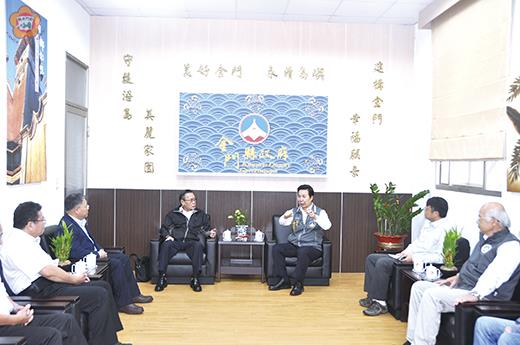 福建省政府秘書長翁明志昨日率同省府主管前往縣府拜會縣長陳福海,雙方曾就二單位間公共事務、土地建物、產權問題,對接窗口等議題交換意見,獲得共識與進展。 翁明志秘書長昨率同省府一組組長張金成、二組專員黃天忠、三組組長陳朝金、人事主任翁正義、會計主任李秀荷、政風主任陳治平、秘書林政道、一行前往縣府拜會縣長陳福海,縣府社會處長甯國平、財政處長許志忠、工策會總幹事王中聖等人在場作陪。 省府秘書長翁明志指出,他本月一日回鍋省府服務,很高興與省府同仁來拜會陳縣長,這也是縣長就職後的首航,覺得很榮幸,此次拜會陳縣長是希望就二單位間公共事務、土地建物、產權問題、管用的問題,當面交換意見,有所突破與進展。 縣長陳福海也感恩前主席杜子軍在擔任省主席期間,協助地方政府中央各部會橫向聯繫,協助金門發展。他也開心懸缺已久的省府秘書長在本月終於派實,而以後很多事情就可以透過執政的民進黨翁明志秘書長來幫金門爭取、執行。 翁明志也針對新店安康胡璉司令官故居,瞭解縣府申請撥用作為紀念館之意向,以為該國有地收回後續執行之參據。 縣長陳福海指出,胡璉將軍是金門的恩主公,對金門的貢獻不在話下,一定要用感恩的心情去面對這種事,縣府有很多資源與胡璉家屬接觸,胡璉紀念館的設立也是所有金門人對於胡璉將軍的尊敬。他也請省府陳朝金組長來幫忙,也要縣府財政處儘快做一個專案,由縣府來承擔並與胡璉家屬良性接觸,後續會有一些新的作為。至於蒐集相關證明文件,把產權拿回來,訴訟等問題,縣府也會來承擔。 翁明志也提到,六月八日省主席訪視縣府時,當時縣府提出五項建議,只要是縣府提出,省府樂意協調,省主席也是政務委員,對金門縣務推展會有更大的幫助,為能充分瞭解縣府所提議題需予協助或協調的方向及掌握各反映案之推動進度,亟需有彙整、管控機制,以提高作業效率。 對此,縣長陳福海指出,成立聯繫窗口與機制很好,政治就是信任,縣府參議翁自保勇於任事,將專責未來與省府聯繫,縣府提出很多議題,希望透過省府相互研討,具體可行的優先定調出來,請張主席在中央協助。 昨日陳縣長也提到,澎湖縣一年執行一百億元(總預算),他們有公務人員六一八人、金門一年執行一百四十億,公務員只有五百一十八人,差一百人,如果連鄉鎮公所算入最少差二、三百人,地制法修難度很高。 陳縣長也邀請省府人力可以回到縣府擔任專案工作。像是中央的年金改革、司法改革、轉型正義,都是專案,可以朝此方向走。 對於陳福海縣長力邀省府人才回縣府,翁明志秘書長說,省府明年一月一日奉林全院長指示成立行政院金馬聯合服務中心,金馬兩縣事務非常多,屆時可能發生人手不足,可能還要廣聘人手。