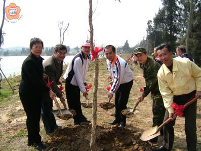 烈嶼地區95年度擴大植樹活動昨日在烈嶼鄉上西湖湖畔舉行,主持人鄉長林金量表示,自92年度起,定期在3月29日前後,利用春天適宜的氣候條件,及青年節特別的日子,藉以發揚革命先烈之精神,推動地區美化植樹工作,並期勉加強綠美化工作,感謝大家參與此項極富意義之活動,並感謝縣府及林務所持續性予以協助支援。 烈嶼地區95年度擴大植樹活動,於昨日上午十時在烈嶼鄉上西湖湖畔舉行,參加人員包括有林務所所長葉媚媚、黃課長、烈嶼守備區旅長栗正傑、金門國家公園烈嶼區管理站主任陳玉成、代表會主席林榮堯、副主席蔡福明、代表方水萬、陳秀治、秘書洪國泰、烈嶼國中校長吳啟騰、卓環國小校長林水綠、上岐國小校長王先勝、西口國小校長許及勉、烈嶼警察所所長葉維誠、烈嶼消防分隊長李忠仁、戶政所主任陳用國、婦聯會青溪支分會主委黃彩虹、鄉公所各課室主管及員工、雙口社區發展協會理事長林天及其社區幹部居民、烈嶼守備旅與海巡、岸巡官兵、各學校師生代表等近貳佰人,共襄盛舉,一起手植樹木、美化烈嶼地區環境。昨日栽植樹種計有台灣巒樹50株、光臘樹50株、柳樹100株、紅葉鐵莧300株及金露花600株,共計1100株。 鄉長林金量表示,烈嶼地區環境綠美化工作,是鄉政建設工作努力的重點事項之一,上任以來自92年度起,定期在每年3月29日前後,利用春天適宜的氣候條件,及青年節特別的日子舉辦植樹活動,藉以發揚革命先烈之精神,推動地區美化植樹工作致力於各項公共設施及鄉村整建工作,努力向上級爭取預算,落實各項軟硬體建設之執行,期望工作團隊同心協力下,勉勵同仁發揮「前人種樹,後人乘涼」之美德精神,並在島上軍民全體一心,帶動植樹綠化工作下,小樹長成後綠葉成蔭,必能造福後人,嘉惠地區鄉親,使烈嶼成為更優質美麗之海上公園。