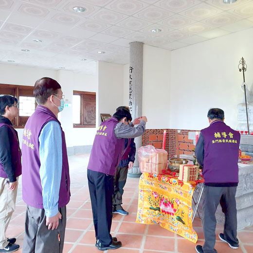 金門榮民服務處近日由處長呂媽定與同仁前往大、小金門各民眾公墓、軍人公墓及仙洲福園等八處園區舉行祭祀歷年在金亡故榮民英靈,祭祀全程莊嚴肅穆。金門榮服處表示,配合中央及地方政府防疫措施,榮服處利用訪視時機提前向榮民眷宣導連假期間祭祀相關防疫作為。呂媽定表示,金門各軍民公墓和靈骨塔共有9處,每逢清明前夕祭祀在金亡故榮民英靈是榮服處必要工作之一。 清明時節,金門榮民服務處為祭祀歷年在金亡故榮民英靈,由處長呂媽定率同副處長及總幹事及全處同仁分別至大、小金門各民眾公墓、軍人公墓及仙洲福園等八處園區舉行「109年祭祀歷年在金亡故榮民英靈」儀程。 榮服處準備鮮花素果並由三長主持,敬悼在金亡故榮民英靈,祭祀全程莊嚴肅穆,特別是祭祀位於金山公墓內的「國軍陣亡將士靈位」後,處長呂媽定亦利用空檔向與祭同仁說明數位在金亡故榮民生前事蹟一同緬懷其生前義行。 金門榮服處表示,本次祭祀因應新冠肺炎疫情,配合中央及地方政府防疫措施,適逢連續假期自台返金榮民眷人數眾多,服務處更是利用訪視時機提前向榮民眷宣導連假期間祭祀相關防疫作為。 呂媽定表示,清明祭祖是中國人長久以來固有的傳統美德,並具有深厚傳承的教育意涵。論語學而篇所說「慎終追遠,民德歸厚矣」就是要提醒代代後人不忘先祖傳承的訓誨;然而亡故榮民或時空相隔、或子嗣無從查悉,金門各軍民公墓和靈骨塔共有9處,每逢清明前夕祭祀在金亡故榮民英靈自是榮服處必要工作之一,藉此彰顯退除役官兵曾經犧牲奉獻,服務國家社會之功勳,以慰英靈。
