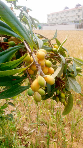 枇杷成熟了! 清明節前後是枇杷產季!地區許多民眾在住家庭園種植枇杷樹,一到清明節時期,顆顆黃澄澄的枇杷高高掛,香甜多汁又飽滿,讓人垂涎欲滴。 根據維基百科資料指出,枇杷(學名:Eriobotrya japonica),中文古名蘆橘,又名金丸、蘆枝、琵琶果,是薔薇科中的枇杷屬的一種植物。枇杷原產中國東南部,因果子形狀似琵琶樂器而名。 成熟的枇杷味道甜美,營養頗豐,有各種果糖、葡萄糖、鉀、磷、鐵、鈣以及維生素A、B、C等。當中胡蘿蔔素含量在各水果中為第三位。中醫認為枇杷果實有潤肺、止咳、止渴的功效。吃枇杷時要剝皮。除了鮮吃外,亦有以枇杷肉製成糖水罐頭,或以枇杷釀酒。枇杷不論是葉、果和核都含有苦杏仁■。 枇杷葉亦是中藥的一種,以大塊枇杷葉曬乾入藥(又稱作枇杷葉、蘆橘葉、無憂扇),有清肺胃熱,降氣化痰的功用,常有與其他藥材製成「川貝枇杷膏」。但枇杷與其他相關的植物一樣,種子及新葉輕微帶有毒性,生吃會釋放出微量氰化物,但因其味苦,一般不會吃足以致害的份量。 枇杷與大部分果樹不同,在秋天或初冬開花,散冷香,果子在春天至初夏成熟,比其他水果都早,因此清·陳淏在著作《花鏡》中稱枇杷是「果木中獨備四時之氣者」。枇杷的花為白色或淡黃色,有五塊花瓣,直徑約2厘米,以五至十朵成一束,可以作為蜜源作物。 成熟的枇杷果子亦成束掛在樹上,每個果子長3-5厘米,成圓形、橢圓、或長狀「琵琶形」。枇杷表面被有絨毛,未熟時青綠色,較硬實,芳香氣味較濃。成熟後外皮一般為淡黃色,亦有顏色較深,接近橙紅色的。果肉軟而多汁,主要可分為白色及橙色兩種;稱「白沙」(白枇杷)及「紅沙」。當中白沙甜,果型較小;紅沙酸甜可口,果實若經培育相對較大。每個枇杷果子內有五個子房,當中一至五顆發育成棕色的種子,人工開發的無籽品種則無種子。