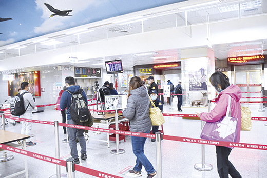 清明節連續假期結束, 因受新冠肺炎疫情(COVID-19)影響,尚義機場收假人潮比往年減少許多,許多返鄉掃墓的鄉親都錯開假期提早回來,兩家航空公司金門台北、高雄航線晚上七時前雖然班班客滿,最晚三班都尚有空位,讓台金各航線班機很順暢的疏運返回工作地的鄉親和旅客,候補旅客均能順利補位,圓滿完成台金航線疏運任務。 一連四天清明節連續假期昨(五)日告一段落,四月六日恢復正常上班,尚義機場受疫情影響,台金空中運輸人潮不如往年多,昨日晚上七時前兩家航空公司金門往台北與往高雄航線班班客滿,往台中航班一整天都尚有空位,立榮晚間七時四十分、八時十分與華信晚間九時四十分往台北的航班尚有空位,讓旅客都有機可搭,順順利利的返回工作崗位。 金門航空站表示,昨天台金航線兩家航空公司表定和加開台金線班機總計往返飛行三十九航班,兩家航空公司飛往台北、高雄各航班幾乎班班滿載,最後一班華信航空到晚上近九時四十分才離金飛往台北,讓所有旅遊或掃墓旅客都能順利回到台灣。 由於新冠肺炎(2019冠狀病毒疾病,COVID-19)疫情嚴峻,防疫成為清明連假一大挑戰,金門航空站入出境裝設紅外線體溫量測儀,旅客實施體溫量測,額溫2次達攝氏37.5度、耳溫達38度,可拒載並禁止進入,所有的大眾運輸希望大家要戴口罩才能搭車,希望大家配合,讓清明連假不要有防疫缺口。