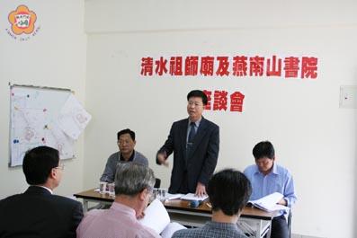 縣府昨日召開「金門縣燕南山書院(含清水祖師廟)籌建委員會」第二次會議,縣長李炷烽聽取古區鄉親意見後裁示,規劃設計主體建築採B案,周邊綠美化土地採A案,符合鄉親需求成為觀光景點最大格局,但要求鄉親盡快協議私有地完成相關手續,讓燕南山書院早日動工發包,所需差額經費再辦理追加預算。 為重建燕南山書院,縣府成立「金門縣燕南山書院(含清水祖師廟)籌建委員會」,昨日下午召開第二次會議,並邀請古區鄉親與會,交換重建意見。會議由兼任主任委員的縣長李炷烽主持,文化局長李錫隆、金城鎮長蔡輝詩、代表會主席陳天成、賢庵里長盧志嶢、委員王振權、許金龍以及地區文史工作者黃振良、許維民等人出席。 縣長李炷烽表示,燕南山書院是信仰與文化中心,重建工作更是金門的大事,政府立場是有決心要來做好這件事,但因牽涉私人土地問題未解決,他希望地方人士發揮力量,共同商討計畫,早日協調商討出設計規劃,同時希望大家熱心參與,盡快協議私有地完成相關手續,讓燕南山書院早日動工發包。 古區鄉親則表示既然要蓋就要興建格局最大,地大才有度量,才有福氣,有關私有地部分籌建會也派人加緊協調奉獻出來,但是規劃設計變更後經費變多,地方配合款也相對增多,希望政府能協助解決。 縣長李炷烽聽取古區鄉親意見後表示,籌建委員會以後由金城鎮長蔡輝詩擔任召集人召開會議,里長盧志嶢與委員協助相關事宜,開會也可通知他,有時間就會趕來參與。並裁示規劃設計主體建築採B案,周邊綠美化土地採A案,符合鄉親需求成為觀光景點最大格局,但土地由大家來奉獻,要求鄉親盡快協議私有地完成相關手續,讓燕南山書院早日動工發包,主體設計不涉及私有地可優先進行,所需差額經費再由縣府辦理追加預算。 金門縣文化局指出,清水祖師廟及燕南山書院復建工程,土地由古區陳氏宗親會釋放提供使用,並依實例地方宗親需自籌經費補助,同時成立經營管理協會擬定復建後經營管理辦法;而目前金門縣文化局並已向行政院文建會提出新台幣四千五百萬元補助款初審通過,文建會正進行複審作業。希望預定在九十六年十二月三十一日完工。 根據縣誌記載,太文巖寺始建於明朝末年,原為三進的大殿堂,清時第三進曾闢為「燕南書院」,對教化人心甚多貢獻,並與海印寺、田浦城隍廟、庵前恩主公廟和金城南門香蓮廟合稱浯洲五大名廟,民國十六年曾重新翻建,歷時二年餘才完工。 民國三十九年間,國軍進駐之後,以太文巖寺地勢險要,為構築防禦工事,將廟宇拆毀,就地取用石條、磚塊和木材,在前兩進建築堡壘和彈藥庫,而「燕南書院」舊址亦構築雷達觀測所,「黑面祖師」則被村民暫厝於村內「回龍宮」供奉迄今。每年農曆正月初六日為清水祖師誕辰之日。