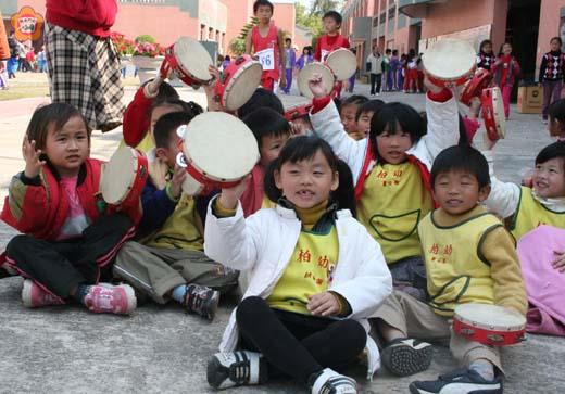 柏村加油!金湖學區九十四學年度運動會昨日熱鬧登場,柏村國小幼稚園小朋友,在老師帶領下前往運動場為選手加油,道具齊全,包括鈴鼓、保特瓶等,成為場外焦點。 在昨日運動會中,不僅場上有優異表現,共有三項目傳出破紀錄演出,場邊金湖學區各學校幾乎總動員,由師長帶領學生前往進行戶外教學並替選手加油。 柏村國小幼稚園小朋友,人手一鈴鼓在老師的指導下,在場邊為選手加油,齊聲吶喊:「柏村加油!」,成為場外焦點。