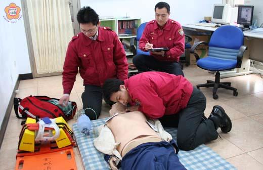 金城消防分隊昨日下午展開消防人員救護技術操作比賽,針對車禍、溺水、中風、火場救護、癲癇、異物梗塞等六項模擬情境進行實兵演練評比,除了驗收平日訓練成果,並藉以提昇緊急救護服務品質,強化各單項救護技術操作,於救護現場即能以適當正確處置,確保緊急傷病患之生命。 有鑑於日前高雄縣執行精神病患就醫勤務,於送醫途中因一時疏忽,未依標準作業程序執勤,造成病患跳車受傷之不幸案例,為防範此類案件發生及提升到醫院前救護服務品質,強化各單項救護技術操作,藉以融會貫通落實執行緊急救護,以適當處置到院前急救工作,保障民眾生命安全,金城消防分隊昨日下午特別展開這項消防人員救護技術操作比賽。 為順遂執行各項救護勤務,金城消防分隊昨日透過考試測驗方式,針對情境實施實兵演練,演練方式為兩人一組,項目分別規劃有車禍、溺水、中風、火場救護、癲癇、異物梗塞等六項情境,由分隊長董必文督導考試全盤事宜,透過評比以抽籤方式,由消防人員以救護用假人「安妮」進行情境操作測驗,以驗收平日訓練成果。 在經過一連串測驗後,測驗成績在職消組由許凱嵐與曾以勒成績最優,替代役組以王蓁辰和楊忠儒成績較佳,在測驗中更將消防人員平日加強緊急救護訓練的功力展露無遺。 金城消防分隊長董必文表示,金城轄區因屬於都市型態之區域,設籍人口數為地區之冠,相對救護量也居全縣之最,按往年統計資料顯示,每年金城地區救護量計約七百至八百件之間,約占地區總救護量三分之二以上之數據,此一勤務量為目前消防勤務重點勤務項目,也責無旁貸。 他並強調,為能順遂執行各項救護勤務,金城分隊將持續強化各項救護技術操作,期能將訓練與實務結合,熟練各項緊急救護工作,於救護現場適當正確處置急救傷病患,確保緊急傷病患之生命與健康,加強出勤人員安全及各項法律責任之認知,以提昇專業形象,保障鎮民生命財產安全。