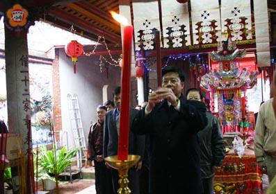 農曆二月初二日為「開浯恩主」牧馬侯陳淵聖誕,昨日上午縣長李炷烽率金門各界在金城鎮庵前牧馬侯祠舉行公祭典禮,追懷陳淵開發金門德澤,而村民也自前日一連作醮兩天,祈求「恩主公」永佑浯島平安。 公祭儀式於昨日上午八時三十分在金城鎮豐蓮山三級古蹟「牧馬侯祠」舉行,由縣長李炷烽擔任主祭官,地方各界首長、學校校長等人參加,並依循古禮行上香、獻花、獻爵、獻饌、獻果、獻爐敬金,場面莊嚴隆重。 除各界公祭儀式外,庵前村民也作醮二天,慶祝恩主公陳牧馬侯冥誕紀念日。而牧馬侯陳淵神輿並繞境巡安,村民也都以虔敬的心,在門前擺設香案祭拜,表達對恩主公的敬意,並提著「牲禮」到廟內上香膜拜,祈求恩主公庇佑,家家平安。 牧馬侯祠又稱「孚濟廟」,根據文獻記載,明朝以前的牧馬侯祠是一座擁有七進的殿宇,規式壯麗,惜傾圯多年,現在前三落殿宇的規制,大約為道光年間時重建後的規模。 牧馬侯祠位於庵前村,已列為國家三級古蹟,供奉「開浯恩主」陳淵。歷代幾經修葺,原三進式廟宇是道光二十三年所修,縣府為保存牧馬侯祠風貌,爭取內政部經費補助工程費三千餘萬元,自八十四年動工修護,並於八十六年十二月完工,牧馬侯祠修護工程是金門縣第一座進口使用大陸福州杉原木,三進的廟宇,名家的剪黏、彩繪、庭園造景,使牧馬侯散發傳統建築優美風範。 相傳陳淵為唐代光州固始養馬戶,在德宗貞元十九年(西元八○三年)率十二姓氏族來金,選擇地形如蓮花瓣,水草豐沛、土地沃腴的豐蓮山麓駐紮牧馬,陳淵善於養馬,驪黃牝牡,千百成群,能令馬兒聽從號令,有「馬祖」之譽;陳淵在牧馬之餘尚開墾山林,化荒蕪為良田,種植五穀,奠定了浯洲開發基礎,因此為島民尊稱為「開浯恩主」。陳淵是在唐德宗貞元年間,奉派到金門牧馬,當時隨行的有蔡、許、翁、李、張、黃、王、呂、劉、洪、林、蕭等十二姓移民,自此生聚日藩,為地方開拓之始,民眾為感念其德澤,尊稱為「恩主公」,建廟奉祀。 地方相傳陳淵生前並未封侯,在他物化後,鄉民泥塑其像,尊為「護驥將軍」,歲時禱祝,有求必應,元順帝年間更顯靈退倭護民,因此,朝廷特別敕封為「福佑聖侯」,賜建七進廟宇,名曰「孚濟廟」。
