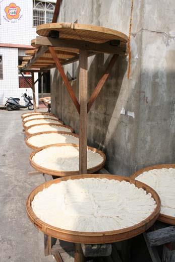 天氣放晴,才過年,辛勤的鄉親,就紛紛上工,為全家生計,製麵線、曬麵線。 竹簍裡,滿裝著的是家人的希望,曝曬的是製麵人的青春,一簍簍的潔白麵線,一寸寸的稀白髮絲。