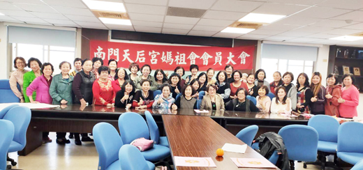 金門縣南門天后宮媽祖會於日前召開「南門媽祖會第四屆第一次會員大會」,會中同時進行改選會長、委員、監察人等。會議當中,經會員們投票結果,由王資音當選新任會長一職。 南門媽祖會第四屆第一次會員大會於日前在金城鎮公所召開,會中邀請會員們進行改選會長、委員等職務;同時針對多項提案議題進行商討,今年由於受到新冠肺炎的影響,會中也針對媽祖生日當天的繞境活動、會後祈福餐會等是否要因疫情而取消;以及接下來迎城隍活動的相關訊息等進行討論。 金門縣南門媽祖會是直屬於南門境天后宮,媽祖會成立的目的,是秉持對媽祖的信仰,以能知足、感恩、惜緣、純樸、認真堅定的信念與媽祖同行而成立的,同時也是希望促進會員合作,加強彼此的情感交流,同時增進會員福利與協助地方安定為宗旨。會員們只要遇有廟會慶典之際,全體會員都會全力配合廟會需要,練習陣頭,並且共同參與各項廟會、遶境活動。 日前的會員大會上,進行改選第四屆委員、監察人、常務監察人,以及會長、副會長的選舉,名單分別為:榮譽會長許金針。會長王資音。副會長凃凱津。常務理事周手治、許琳玉。委員黃惠英、鄭雯霞、薛憶雯、蔡秋雲、李浯燕、翁玲愛、林麗英、楊麗娟、白素卿、楊艷虹、張美玲。常務監察李藝菁。監察人楊艷虹、周梅蘭、黃招治、周錫蔭。總幹事鄭鳳仙。 而稍後的會員聯誼餐會上,金城鎮長李誠智、親民接待室主任洪學文代表縣府、北門里里長許績才、南門里里長鄭易岳、國民黨金門黨部主任委員石兆瑉、南門天后宮管理委員會主任委員許燕輝等人也出席,與會員們閒話家常。 鎮長李誠智表示,自己也是身為南門里民,同時也是媽祖虔誠的信徒,對於媽祖會的會員們多年來一直不計辛勞的支持天后宮的各項活動,也讓他相當感動,他除了向新出爐的會長與委員們表達恭賀之外,也盼媽祖會能夠在會長王資音的帶領之下繼續成長茁壯。
