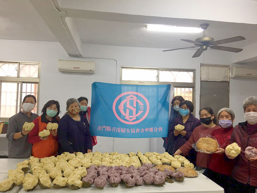 清明節將至,縣議員許玉昭和青溪婦女協會金寧鄉分會姐妹們共聚一堂,一起做清明應景金門傳統膨仔粿,出爐的粿香四溢。 許玉昭和一群婆婆媽媽一起來做發粿,大夥嫻熟的技藝,每顆發粿都「發」且裂得漂亮,完成Q軟美味的在地傳統米食「膨仔粿」。 許玉昭表示,善於製作傳統糕點的婆婆媽媽,也熱心教導年輕一輩製作發粿,使這項傳統技藝得以傳承。許玉昭說,小時候常看長輩在磨米做粿,很多傳統米食技藝都快失傳,如,高粱年糕、黑糖糕、澎仔粿、紅龜粿、禮餅、菜粿,婆婆媽媽一起做粿,彷彿回到從前有人情味的農村生活。 許玉昭指出,清明為金門最重視的節慶,金門清明節傳統習俗,要炊膨粿,祭拜祖先,慎終追遠、緬懷先賢、飲水思源、尊循祖先的教誨及發揚傳統民俗,傳承文化。 許玉昭說,發粿(閩南語)又叫發糕,諧音發財、高升,可用於祭祀或饋贈親人。粿上裂痕為「笑」,外型發得越大,裂痕越深,象徵笑口常開,生活順意。金門發糕和其他地區的發糕滋味有所不同,有獨特的在地美味。 許玉昭表示,在傳統的習俗裡,年糕象徵年年高昇、澎仔粿代表發財、紅龜粿代表福氣、榮祿和長壽,都是年節金門家戶必備的應景祭祀供品。隨著社會現代化,傳統金門習俗已逐漸被新生代淡忘,透由活動,宣揚古早味金門傳統糕點,讓更多人認識金門傳統糕點象徵意義及體驗農村婦女刻苦勤儉持家的精神。