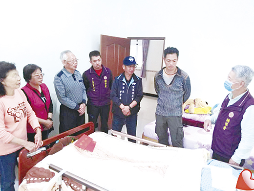金門縣榮民服務處近日連結地區退伍軍人社團「陸海空軍常備士官班相互關懷協會」金門分會及「金門縣空軍後備協會」,主動與該處責任區社工員、金城社區服務組長李錫銓、金城榮欣志工李瑞麟隊長到金城鎮訪視慰問重殘之空軍退役士官長盧先生,並致贈慰問金。 金門榮服處表示,盧先生畢業於空軍機械學校65年班,2年前因罹患腦部缺氧性病變導致臥床,並靠呼吸器維生,盧先生離婚無子女,目前僅靠兄嫂支持照顧,而自患病臥床起每月龐大的醫療照護開銷,退休俸已入不敷出。 榮服處在得知盧先生近況後立即聯繫地區「陸海空軍常備士官班相互關懷協會」金門分會及「金門縣空軍後備協會」等社團,並由何永城總幹事與李應文理事長分別到盧先生家中慰問。 金門榮服處表示,此消息經「陸海空軍常備士官班相互關懷協會」於網路公告後,「中華民國空軍校友會」秘書長曾肇基先生亦主動致電金門榮服處,並自台灣飛抵金門,一同到盧宅慰問。 金門榮服處處長呂媽定表示,榮服處人力資源有限,長年來均需借助地區退伍軍人社團補足服務照顧缺口,此次實施慰問對象為空軍退役士官,符合兩協會核心宗旨的照顧對象。呂媽定特別感謝「中華民國空軍校友會」自台灣來金門慰問,希望藉此舉拋磚引玉使更多人能發揮愛心。也特別指示服務人員協助向地方政府爭取救助,呂媽定再次感謝地區「陸海空軍常備士官班相互關懷協會」金門分會何永城總幹事、「金門縣空軍後備協會」李應文理事長,與退伍軍人社團長年對退伍榮民的關懷照顧。
