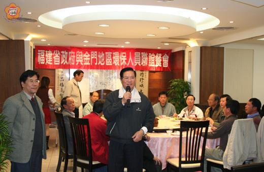 「環保人員平日默默付出,為金門環境整潔盡心盡力,為鄉親及地區環境做出最大的貢獻」,福建省政府主席顏忠誠昨日在邀約大金門四鄉鎮環保人員餐敘時,也表達最高的敬意與最大的感謝,並期許大家一起來守護家鄉環境,讓金門明天更美好! 省主席顏忠誠昨日中午率同省府秘書長翁明志、省府委員陳滄江、許燕政及省府第一組組長楊誠璽、第二組組長董巖山、第三組組長張金成、人事室主任楊立輝、會計室主任張賜、專員李振瑞等人,邀集了大金門地區環保人員葡京餐廳喝春酒,慰勉環保人員終年的辛勞,包括本縣環保局局長楊水森、課長李欣、張金為,及金城鎮長蔡輝詩、金寧鄉長李文俊與各鄉鎮秘書、清潔隊長等應邀出席。 顏主席也祝福環保人員在新的一年工作愉快、事事順心、家庭幸福美滿。他並表示,清潔隊員平日在工作上努力盡職,將環境打掃得很乾淨,讓金門處處都很整潔、景觀美麗,這都是大家努力辛勞與貢獻。 顏主席說,一個地方的環境整潔非常重要,金門生活要提升、經濟要繁榮發展,如果環境不好,是無法提升的,近幾年來金門發展觀光,來金參訪的包括台灣、國外的觀光客相當多,把環保工作做好就是最大的貢獻。他更肯定環保人員為維護地區生態及環保工作盡心盡力,是守護地區美麗環境的大功臣。 顏主席表示,每一年過年時最辛苦的就是環保人員,家家戶戶除舊佈新,整理出來的垃圾,環保人員日夜加班配合清運,讓民眾快樂迎新年,而大年初四正當大家仍在歡渡年節之際,環保人員更是犧牲假期默默清理垃圾,讓民眾在開春上班就有一個整潔乾淨的環境,這就是對地區民眾最大的貢獻。 他也期許大家未來持續努力,為地區生態環境盡心力,讓金門的明天更美好。 環保局長楊水森也代表環保人員感謝顏主席及省府長官的支持與盛情邀宴及勉勵。他也特別向此次內閣改組後再獲層峰留任的顏主席、翁明志秘書長及陳滄江、許燕政二位委員表示道賀之意。並指出,未來在省府的指導下,全體環保人員當加倍努力,把地區環保工作做得更好,以回應各界長官及民眾對環保工作的要求與期許。在聯誼餐敘中,顏主席對於能與這群平日默默守護金門環境整潔的環保尖兵共進午餐,感到相當開心,親切與環保人員握手致意、話家常,平易近人作風流露無遺,趁著難得歡聚的時刻,顏主席與秘書長翁明志,及委員陳滄江、許燕政、各組室主管、鄉鎮長也逐桌向環保人員敬酒致意,場面相當熱絡而溫馨。 顏主席今日也將率同省府主管跨海赴烈嶼鄉,並於中午在海園餐廳與小金門地區環保人員聯誼餐敘,慰勉大家的辛勞。