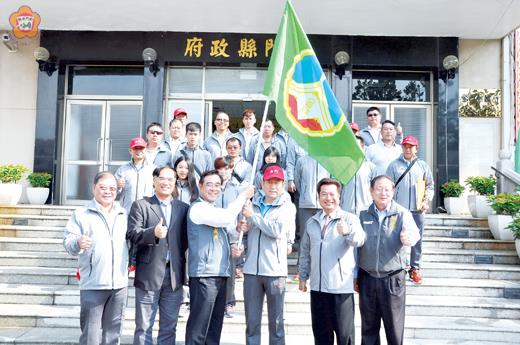 105年全民運動會11月5日起至9日將在台中市登場,金門縣代表隊一行,昨日上午由副縣長吳成典主持授旗儀式後,分兩梯次出發赴台。吳副縣長期許參賽選手發揮最佳實力,以在全國競技舞台來為個人和金門爭光和爭取榮譽。 授旗儀式昨日上午十時起,在縣政府大門口舉行,由副縣長吳成典授旗予代表隊總管理金門縣立體育場場長許換生。在場參與的有教育處長李文良、副處長陳金文、科長王麗娟、金門大學管理學院院長董燊、金門體育會理事長李金贊等人。 教育處長李文良表示,本次金門縣共派出50位選手報名參加6項競賽,包括木球、武術、太極拳、慢速壘球、水上救生、運動舞蹈等。 全民運動會兩年舉辦一次,今年係在台中市舉辦,金門縣這次徵召50位選手,參加賽事包括木球(男女生組)22人、慢速壘球(男生組)20人、運動舞蹈(男女生混合組)4人、水上救生(男生組)2人、太極拳(男生組)1人、國術(男生組)1人。 根據金門縣立體育場提供資料,金門本次參賽選手包括,男子木球:領隊石兆瑉、教練董燊、管理張輝忠、選手王文進、江俊德、周偉義、梁章發、何聰賢、古文秀、古棓羽、王榮山、蕭家宏、張家豪、林本源、李國良、陳益富、洪金鼎。女子木球:領隊李誠智、選手蘇宥璇、李素滿、陳凱妮、呂曉媛、柯玉貞、楊又瑄、彭映綺、藍金香。慢速壘球:領隊楊忠發、教練張瑞揚、唐惠清、經理吳志偉、隊長鄭榮盛、選手余國彥、莊天祥、莊淞傅、莊志豪、翁弘儒、邵凡嘉、謝昇瑋、陳尚瑋、鄭智銘、謝鑫培、何仁浩、鄭映廷、張韶宇、林柏勛、許庭恩、李馬成、鄭子浩、唐昇安、邱祥煜。運動舞蹈:領隊王賢德、教練王國兆、選手陳瑞、許雅淳、陳韋龍、呂宜霈。水上救生:教練盧光國、選手吳明雄、戴榮育。太極拳:領隊黃獻文、教練陳振福、選手李榮興。國術:教練陳振福、選手董岳燊。