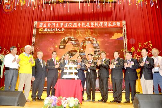 國立金門大學昨(4)日盛大舉辦建校20週年校慶典禮,並於校園內種下新枝綠葉,象徵邁向下一個發展階段。縣長陳福海盛讚金門大學對於金門的貢獻,也希望金大學子畢業後能留下來發展,並以「立足金門,百年榮耀;喜承先啟後英才薈萃」。「面向兩岸,雙十薪傳;慶繼往開來代有精英」。贈予金大。 金大20週年校慶典禮於昨(四)日上午九時假金大多功能活動中心舉辦,各界貴客登門祝賀,有僑界貴賓黃進益總主席、王萬權副總主席、林國欽董事長、呂清便主席、李錫循署理主席、鍾賜賢董事長與葉貞吟主席及印尼、馬來西亞、新加坡、汶萊、美國、香港祝賀團與高雄應用科技大學一行人外,金門縣長陳福海、金門縣政府教育處長李文良、陳滄江縣議員、金寧鄉鄉長陳成勇、金寧代表會陳成泉主席、金城鎮代表會陳天成主席、金防部政戰副主任郭劍豪、金門航空站洪念慈主任、金門縣工商策進會王中聖總幹事、金門縣紅十字會會長王水彰、金門縣議會前議長王再生、救國團金門縣團委會徐國華總幹事、成大陳益源教授、銘傳大學金門分部陳仁暐主任、金寧中小學校長陳雅蘭、立榮航空金門機場辦事處王榮海副主任、金湖大飯店公司吳美娟副理、盤山社區發展協會翁自然理事長等金門在地的貴賓均蒞臨現場給予金大最大的祝福。縣長陳福海、金大校長黃奇、東南亞僑領黃進益、創校校長黃廣志等人共同唱生日快樂歌,為金大慶生,現場氣氛熱鬧非凡。 典禮由盤山社區與金盤山鑼鼓隊「鑼鼓威振」以及原住民舞蹈隊「原民美的印象」兩個精彩的表演開場,炒熱會場氣氛。黃奇校長於致詞時表示今天是金大20歲生日,校內師生歡欣鼓舞,慶祝這一個有意義的日子。而遠從東南亞以及世界各地來的慶賀團,更為本次金大校慶增添無限光彩,建立了珍貴的歷史紀錄。黃奇也特別感謝母校高雄應用科技大學過去以來的栽培,讓兩校有血濃於水的感情。黃奇指出金大設立對於金門來說在歷史文風傳承、知識學習創造、專業人才智庫、高等教育服務、兩岸學術平台上具有重要意義。而就任校長兩年以來,在校務發展上的推動,讓高階師資比率、新生入學成績、新生註冊率等績效指標年年創新高。黃奇認為教育是百年大計,十年樹木、百年樹人,而金大發展至今已達「金大雙十 卓越堅實」的階段性任務,未來將以前瞻務實的態度,將金大招牌擦亮,在國際舞台上發光、發亮。 縣長陳福海致詞時感謝歷來歷任校長對金大的奉獻,也歡迎東南亞僑領與僑親利用此次機會回來家鄉金門。縣長陳福海提到金門800多年前朱熹來金講學,奠定了金門文風基礎,宋明清以來更有多達50位的金門進士。雖然戰亂曾經使得金門教育的發展受到停滯,但在學校校長、師生、僑領、僑親、旅台鄉親等人的齊心努力之下,金門大學今天已經20歲了,這是一個值得慶祝與紀念的日子。陳縣長也指出金門大學由早期四個科一百多位學生,到現在四個學院、十七個系、四千多位學生,在少子化的環境變動下,這樣的發展與規模真正不容易,大家一定要珍惜共同努力而來的成果,繼續支持金門大學往質量俱優的方向發展,成為一所名校。金門縣政府會持續透過建校基金、改大計畫、就學津貼、交通圖書等實質補助與獎勵方式,讓金門大學校務發展能夠順利,讓金大學生能夠在此安心就學,達到薪火相傳的目標。未來金門縣政府會和金門大學共同攜手朝這個遠大的目標邁進,不僅成為兩岸、更把目標放在成為東亞、甚至世界名校。 陳縣長最終也希望金大學生畢業後能繼續留在金門發展參與金門各項建設,並以「立足金門,百年榮耀;喜承先啟後英才薈萃」。「面向兩岸,雙十薪傳;慶繼往開來代有精英」。贈予金大。 黃進益總主席致詞時表示利用此次返鄉,在家鄉金門走了一圈,看到金門蓬勃發展,心中覺得高興,因為金門跟早期的環境不一樣了。他雖然在印尼出生、成長、奮鬥,但心卻是跟金門時時繫在一起,希望家鄉發展能一年比一年好。黃主席也表示,教育為治國之本;國家要長治久安,教育是非常基本的一環,因為有好的人才,才會有好的產業,有好的產業,才會有好的社會,有好的社會,才能有好的國家。黃主席期盼金門大學能在故鄉站穩腳步,胸懷世界,放眼天下,達到校訓所言真知力行、兼善天下,再現金門百年風華。黃主席也勉勵在場學生,畢業之後要好好表現,在既有的基礎上奮勇前進、繼續精進,為營造出更和善、更進步的社會而做出努力。 校慶典禮金大也頒發多項獎項,老師得獎部分包含研究傑出獎4位、升等成功獎15位,楊忠禮教學傑出獎3位、楊忠禮教學優良獎11位、貢獻傑出獎3位、指導學生傑出獎6位。學生得獎部分,計有貢獻傑出獎8位、競賽傑出獎共21位。 典禮結束後金大並安排校園工藝營造<風獅爺>揭綵儀式,邀請本地陶藝家王明宗創作「金大HERO風獅爺」公共藝術,呈現特色大學計劃中校園營造工藝成果。藉此延續校園內閩南風格元素的藝術創作,也讓學生能夠學習風獅爺刻苦耐勞的守護精神,在未來能蛻變成國家的守護神。創作者王明宗在揭綵儀式中表示,金大建築雖是閩南式,但內部公共藝術多是屬於西方文化,而風獅爺是金門的守護神,可以結合閩南文化。黃奇則是希望學生學成之後,能成為國家社會的守護神,並秉持「金大雙十,卓越堅實」的精神,發揮文化影響力,在國際舞台發光發熱,擦