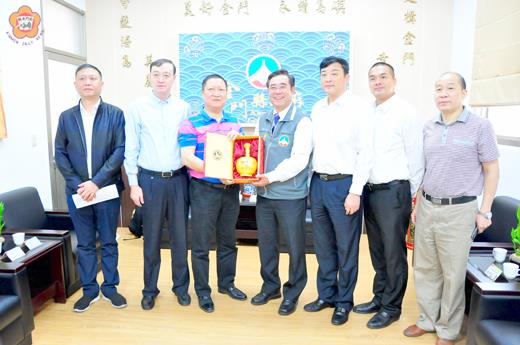 大陸福建省人民政府臺灣事務辦公室王志輝處長一行人抵金參訪,並於昨天到金門縣政府進行拜會活動。副縣長吳成典接見歡迎時表示,希望金門與福建多多舉辦交流活動,增進兩岸合作及發展繁榮;同時,對於2016兩岸企業家峰會明(六)日首度在金門舉辦,吳成典也說縣府會全力配合各項事宜,務必做好維安、不能有任何閃失,期使峰會順利、安全,圓滿成功! 王志輝和大陸福建省台辦一行,是於前(三)日循小三通跨海到金門展開一連三天的參訪活動;昨天上午十時二十分,在縣府大陸事務科科長蔡百里等人陪同,他們抵縣政府拜會,副縣長吳成典接見並代表縣長陳福海表示歡迎之意,也期冀兩岸多交流與合作。 今年的兩岸企業家峰會活動將於明天在金門登場,王志輝一行也將與會;至於參加峰會的企業家及相關人士約五百人,也將於今天陸續抵達金門並安排參訪和歡迎晚宴。在接見中,吳成典與王志輝對兩岸企業家峰會活動準備事宜,均能做到完善;尤以維安,吳成典表示不能有任何閃失的狀況。 兩岸企業家峰會也是繼去年第三次兩岸事務首長會議在金門舉行,均是頭一遭,突顯出在兩岸和平發展過程中,金門所扮演的關鍵角色!而,峰會除了是兩岸企業界、經濟界就宏觀經濟、產業發展形勢開展交流研討,促進企業對接合作重要民間性交流平台外,與會者也希望兩岸業界通過峰會平台,持續推動創新合作,青年就業創業,共享經驗,共謀發展。 另,副縣長吳成典指出,金門有一千六百多年歷史,也是福建省的一縣,與大陸一樣是福建省;他並說小三通若是早十年開通,它的發展和兩岸交流就有著不一樣,「兩岸一家親」多連繫,交流活動越辦越多,更增進兩岸的合作。 此外,大陸福建省台辦處長王志輝一行人,昨天到金門縣政府拜會告一段落之後,他們續到各地參訪行程,預定參與明天的兩岸企業家峰會開幕後,王志輝一行人隨即搭小三通客船返廈,劃下短短約四天的參訪行程句點。