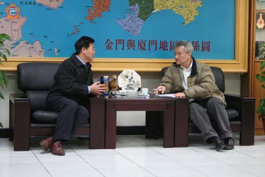 縣長李炷烽昨前往拜會金防部司令吳達澎,恭賀其高陞政治作戰局局長,並致贈金門特產金酒、陶瓷,期盼未來能多為金門以及金酒行銷,讓金門觀光更蓬勃發展。吳達澎也對於縣府平日與軍方的配合表達感謝之意。 金防部司令吳達澎中將晉升陸軍二級上將,並接任政治作戰局局長,縣長李炷烽昨在副縣長楊忠全、建設局局長李增財等人的陪同下前往拜會金防部司令吳達澎,感謝其過去一年多來與縣府的合作、軍民相處融洽,也期盼未來能多多照顧金門。 李炷烽表示,恭賀金防部司令吳達澎高陞政治作戰局局長,金防部歷任司令和縣府相處配合融洽,未來對金門各項發展也有期盼軍方能協助與幫忙。而對於縣府平日與軍方的配合,吳達澎也表達感謝之意。 李炷烽也特別致贈金門特產陶瓷、金酒表達恭賀之意,另也期盼未來多多幫金門以及金酒行銷,促進金門觀光。
