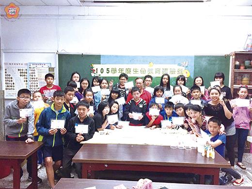 縣府社會處主辦的「105年快樂『玩』英語—兒童育樂營」活動,安排五週六次不同英語情境教學、團康活動及手工藝等豐富課程內容,於卅日舉行萬聖節化妝舞會成果發表後結業,社會處長甯國平頒獎表揚各組表現優良學員,並致詞感謝青年愛金門志工隊與金門大學應用英語系同學辛苦付出,讓小朋友從日常生活中體驗學習英語的樂趣,並透過多元且活潑生動的教學方法,引領兒童在玩樂過程中快樂學習英語,讓孩子自然而然的開口說、唱,不但讓孩子玩得盡興,也讓孩子把英語說得流利。 這項由金門縣政府指導,社會處轄屬青年愛金門志工隊結合金門大學應用英語系及社工系共同辦理的「105年快樂『玩』英語—兒童育樂營」活動,於10月1日、10月8日、10月15日、10月22日、10月29日、10月30日舉行,上課時間為上午9點至下午4點30分,計有三十位2-3年級學童悠遊於精心打造的實境語言學習環境。課程安排五週六次不同英語情境教學、團康活動及手工藝等豐富課程內容,用多元且活潑生動的教學方法,引領兒童在玩樂的過程中,快樂地學習英語。同時為讓兒童了解外國節慶的由來及習俗,最後一週規劃萬聖節化妝舞會,使學員們體驗異國節慶文化的差異,感受不同節慶的熱鬧氛圍及新奇。 活動由志工自行規劃、準備、籌辦,並邀請金門大學應用英語系學生採取共同合作方式,一起帶領小朋友進入英語世界。並安排每週設計一個活動主題進行教學,以快樂學習概念引導,利用各種「玩」的活動方式,讓小朋友蹦蹦跳跳進行學習。同時也搭配各式各樣團康活動,觸發小朋友學習英語的興趣及熱忱,快樂地大聲說「英語」。同時,為讓小朋友體驗國外如何度過萬聖節活動,將安排手工藝學習時間,讓小朋友自行製作邀請卡、服裝、道具等,並於最後一週時間,邀請家長一同參與由小朋友舉辦萬聖節舞會。 每週課程活動內容由志工陳惠娟(為金門大學應用英語系兼任教師) 擔任主題教學講師,並由青年志工協助管理及引導小朋友學習,每週主題教學如下:My new friend(結交新朋友)、I know ABCs(字母與生活)、Beautiful flowers(金門縣花與樹)、My family(我的家人)、My favorite food(數字與生活)、Halloween(萬聖節)。鼓勵孩子從日常生活中體驗學習英語的樂趣,透過團康活動及手工藝等豐富課程內容,讓孩子自然而然的開口說、唱,不但讓孩子玩得盡興,也讓孩子把英語說得流利。 結業式在金門大學體育館李永貞講堂舉行,由社會處長甯國平頒獎表揚各組表現優良學員;團體獎項:第一組獲得最佳造型獎,第二組獲得最佳創意獎,第三組獲得最佳勇氣獎,第四組獲得最佳活力獎,第五組獲得最佳精神獎。個人獎項:第四組蔡彧安獲得最佳才藝獎,第一組賴芊豪獲得最佳表現獎,第三組蔡卓勳獲得最佳模範獎,第二組董容與獲得最佳勤奮獎,第五組黃星寧獲得最佳配合獎,獲獎小朋友上台領獎後並拍照留念。