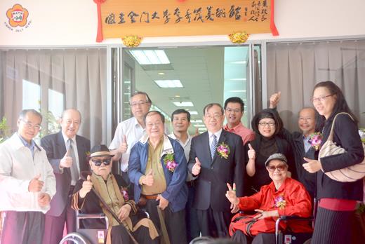 游藝四海、情繫金門,國立金門大學「李奇茂美術館」昨日揭牌開館,畫壇冠蓋雲集,副縣長吳成典以「金門不僅只有金酒,還有最美的藝術」,形容國際知名大師李奇茂大師落腳金門,讓金門揚名國際。李奇茂大師希望美術館做為藝術家聚會空間、兩岸藝術家交流的平台。金大校長黃奇也表示,金門位居兩岸之間,能獲得大師青睞贈畫,將來定當努力扮演兩岸藝術交流的角色。 金門大學於昨日上午9時30分在圖資大樓舉行「李奇茂美術館」揭牌典禮,為金大20週年校慶活動揭開序幕。由副縣長吳成典、金門縣議會副議長謝東龍、金大校長黃奇與李奇茂、張光正賢伉儷及其女兒李安榮等來賓共同揭幕,李奇茂大師的好友顧重光、李穀摩、司馬三三、立藝廊董事長陳慧君、唐健風、陳瓦木等以及金門藝文界吳鼎仁、翁清土、陳海贊、張國治、楊翠華、友人盛崧俊和金門大學師生代表到場共襄盛舉。金門縣議會議長洪麗萍、文化局副局長黃雅芬、金寧鄉長陳成勇、金城鎮代會主席陳天成等人也到場道賀。 副縣長吳成典帶來陳縣長的道賀之意。吳成典感謝李奇茂大師割愛作品,讓金門大學這一座『大師級』的美術館,揚名國際。吳成典說,藝術和高粱酒都是金門重要的資產,李奇茂大師在兩岸藝術界有甚高的知名度,期待「李奇茂美術館」在金門發光、發熱,成為兩岸重要藝術交流中心。 金大校長黃奇指出,金大很榮幸可以邀請到國際知名藝術家李奇茂大師,為金門大學李奇茂美術館揭牌,並號召國內外藝術界人士來金大。黃奇說,在李大師的登高一呼下,短短半年內,金大獲贈來自72位藝術家,共80件藝術作品,水墨、西畫、書法及陶藝作品皆有,作為金大李奇茂美術館之永久館藏,對提升金大藝文氣息,貢獻良多。 黃奇表示,李大師是金大名譽講座教授,也是享譽國際的國畫大師,他的作品聞名中外。李奇茂大師是兩岸世界各地藝文界領導人物,海外及兩岸都有以大師之名設立之美術館或藝術館,國內有醒吾科大的李奇茂美術館;中國大陸從華北到華南,山東、河南、江蘇、安徽到廣東都有李奇茂美術館;韓國、馬來西亞及美國也都有以大師為名之美術館及基金會。黃奇說,回顧李奇茂教授和金大淵源,可以回溯至2010年,李老師為造福金門以及金門大學學子,提升該校的藝文氣息,特別於2010年贈送金大畫作乙批,共有52幅水墨畫作。金大於2011年5月16日,將該校圖資大樓五樓,命名為「李奇茂藝文中心」。如今,金大為感念李大師之貢獻,特別擴大並舉辦「李奇茂美術館揭牌暨書畫展」。未來,「李奇茂美術館」,除了展示藝術畫作外,高雅溫馨的空間,亦將提供給駐校藝術家或金門文史工作者一個聚會與研究的環境空間,擴大藝文推廣,讓地區的中小學藝術教育,移至該美術館觀展,相信對發揚金門藝術教育和氣息,帶來積極的貢獻。 廖了以秘書長基金會捐贈金大210萬元,作為李奇茂美術館未來營運之用,當中有郝海宴董事長10萬元;張文潭董事長100萬元及曾欽照董事長100萬元,近日會再匯入90萬元,合計300萬元捐款,由李安榮代表贈予金大。此外,由李奇茂教授引荐,香港漢榮出版社董事長石漢基,亦共襄盛舉捐贈金大2000餘冊書籍,以豐富館藏。黃奇代表金大全體師生,感謝李大師、捐款者以及所有致贈作品予金大之藝術家,讓金大藝術氛圍提升。 黃奇敬佩李奇茂關心金門、熱愛金門的心,黃奇說,金大獲李大師贈送的畫作是所有美術館最多的,展現李大師深愛金門的感情。黃奇頒贈李奇茂講座教授證書。美術館內並設有李奇茂專屬的辦公室。 「李奇茂美術館揭牌暨書畫展」,為金大20週年校慶活動打響第一砲,為金大20週年校慶系列活動揭開序幕,展出時間自11月1日至11月30日(例假日休息),金大歡迎鄉親與各界好朋友到該校圖資大樓五樓,欣賞李大師和多位藝術家的作品。