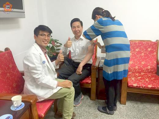公費流感疫苗自10月1日開打,為落實「預防醫學」概念,同時提升民眾接種之便利性,各合約院所特別安排下鄉巡迴及機關到點服務等措施,昨衛生局更協調金湖衛生所到金門縣府大禮堂,為符合接種條件之縣府員工進行接種服務。 縣長陳福海於議會施政報告後,昨日午後4時30分許,也在辦公室主任陳永明陪同下,在縣府大禮堂挽起衣袖接種流感疫苗,同時呼籲符合公費流感疫苗接種對象,應及早完成接種,流行期才能產生足夠的保護力。陳福海說,每年11月到隔年3月是流感高峰期,流感疫苗施打後需約2週後才會產生足夠的抗體,具保護效果,有需要的民眾,他鼓勵應儘早於11月底疫情來臨前完成接種。 衛生局也指出,接種疫苗是預防流感最有效的方法,流感疫苗對健康成人有70%至90%保護效果,對老年人亦可減少50%到60%流感併發重症風險及80%死亡率,呼籲民眾每年定期接種流感疫苗,以獲得保護力。 今年公費施打對象包括滿6個月至18歲青少年、孕婦及產後6個月內婦女、50歲以上成人、高風險慢性病患、罕見疾病及重大傷病患者、醫事衛生等防疫相關人員、禽畜養殖與動物防疫相關人員、BMI值30(含)以上、安養及養護機構對象等。 而為加強各機關團體接種流感之便利性,進而提升民眾接種疫苗之意願,縣府也著即啟動「到點服務」,凡機關經調查符合公費流感疫苗接種資格者,並有意願接種之人數達30人,即可連繫衛生局(082-330697轉610游小姐)協調各流感合約院所到點進行接種服務,以期增加民眾之便利性,進而提升接種意願,並維護個人及家人健康。