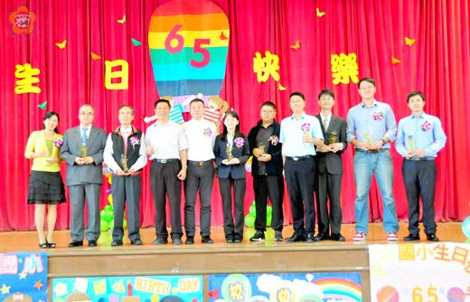 金湖國小第65週年「創意飛舞」校慶慶祝大會活動昨日溫馨舉行,並在湖小舞蹈社精彩的舞蹈表演為校慶揭開序幕;接著,湖小校長陳為信邀請傑出校友及貴賓,共同為金湖國小65週年生日切蛋糕及祝賀!在慶祝大會中,湖小頒獎表揚資深教師獎、傑出校友、績優志工獎,以及頒發風災援校感謝狀給各單位;同時,湖小用心策劃一系列精彩又豐富校慶活動,期待以健康、創新、感恩的精神,發揮社區、學校及親師生良好互動關係,展現「金湖65創意飛舞」的學校新風貌! 湖小校慶慶祝大會活動於昨日上午十時,假該校體育館舉辦,首先進行頒獎表揚儀式,由校友會理事陳進源頒發風災援校感謝狀給金湖鎮公所、林務所、地支部、和勤營造,感謝他們在九月中莫蘭蒂颱風協助完成災後重建,也表達全體湖小親師生之敬意與謝忱。 接著頒發資深教師獎,由校友會創會理事長陳恩賜頒獎,他們是:蔡金勤、黃莉莉、洪慧靜、蔡敏惠、陳蓓蓉、程祖瑛,計六人,在學校服務滿二十年以上,默默奉獻教育、辛勤付出,教育英才無數,成為社會上的菁英棟樑之才,並感謝他們對湖小辛勤的付出。 傑出校友獎,計有十二位,家長會會長李仁傳頒獎:一、教育類~謝志偉(現任金湖國中校長)、黃芸芸 (現任古寧國小校長)、李仲益(現任長庚大學電子系助理教授)、蔡尚瑋(智慧型氣體感測計科技公司執行長)。二、軍政類~洪俊義(金門縣刑警隊大隊長)。三、企業類~呂世雄 (自行設立世電電機設計規劃公司)、陳明海(目前經營石材、建材產業)、林中捷(經緯五金工具行負責人)。服務類~陳賢德(擔任山外社區理事長、金湖國小導護志工隊長、國際會金門分會會員及財務長)。李伯倫(現任SBL、NBA緯來體育台專業球評)、陳國贊(目前為新北市樹林區龍鳳餐廳負責人)。五、文化類~李麗娟(中正國小教師,深耕傳藝「金門鼓吹」,在「科展」及「視覺藝術」教學上亦有卓越的表現,曾榮獲全國教師工會金門縣SUPER教師等多項榮譽)。 另,前湖小校長陳麗玉頒發績優志工獎,他們是吳碧蘭、蔡喬如、張玉英、孫信忠四人,在104學年度服務總時數,佔全隊服務總時數的30%,服務熱忱令人感佩,也感謝所有愛心志工們為金湖國小的熱心奉獻、希望未來他們能持續灌注對金湖國小的愛! 傑出校友洪俊義代表致詞時,他講述求學、擔任刑警和返金服務的故事,並感謝金湖國小給他機會,讓他重新回到母校,並說在台灣都以「金門子弟」自豪,希望學弟妹用心讀書,發揮金門子弟克苦耐勞精神,讓金湖國小亮起來! 「湖小六五、歡欣鼓舞;湖小六五、脫胎換骨!」金湖國小校長陳為信說,感謝陳縣長及教育處處長李文良大力支持,讓湖小四十多年的舊校舍有脫胎換骨轉型的開始。我們不只推動新校園的改造,未來我們將同步展開新校園希望課程。同時,他表示,「只有感動,教育才能走入生命的核心」,孩子需要做夢的空間,可以自由想像的思考和情感空間。從小人格品德與思考雛型的建立,遠比資訊的獲取重要。 陳為信也許願表示,今年欣逢湖小六十五周年校慶,藉著校舍改建,我們營造「生活與美學相遇的空間」,同時啟動了「新校園希望工程」課程,教育孩子們懂得知恩惜福,擴展知識經驗,對週遭人、事、物的善意與熱情,希望透過大自然,藝術與文學成長體驗,啟發孩子的情感,塑造有品而優質的下一代。 今年的湖小校慶活動涵蓋動態及靜態、多采多姿的系列活動,從年初老師陳月蓮音樂獨唱會到湖獅藝想學生美展;之後的校園圍籬彩繪及校慶專刊:65傑出校友手冊編輯,皆讓校慶活動熱度陸續燃燒。金湖國小表示,為使全校學生都參與,學校所規劃十月底社區踩街活動,邀請社區交通志工等社團的參與演出,拉近社區及學校的情感;還有幼兒園熱情洋溢的表演節目,在在展露金湖國小學生學習成果及教師教學成效。 此外,湖小校慶活動還有親子趣味競賽、園遊會除學校、外師、志工攤位提供各式飲食、遊戲外,也同時結合愛心跳蚤市場及好書交換等活動為校慶增光綴彩,熱鬧非凡;湖小校友熱情返回母校,一起歡度金湖65週年校慶,並分享孩子們成長的喜悅!