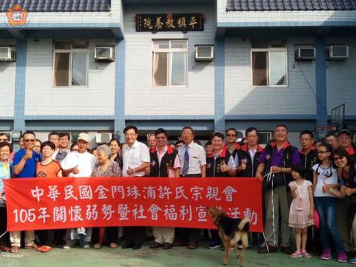 中華民國金門珠浦許氏宗親會為了發揮公益愛心,凝聚宗親向心力,聯繫鄉親情誼,日前特別舉辦了桃園景點一日遊自強活動,由該會理事長許火獅率隊,總計有80名宗親共襄盛舉,金門縣政府駐北區服務處戴河生主任也隨團參加,代表縣長陳福海祝賀全體宗親旅遊順暢,一路平安。 當天上午,宗親會一行首先參觀塔高37公尺的觀音「白沙岬燈塔」,值得一提的,園區內有日晷、百年苦楝樹、鐘塔廣場及觀音溪人行拱橋,是熱門婚紗拍攝及浪漫景點!接著也賞遊永安漁港觀賞海景,站在跨海景觀橋,海風吹拂臉龐,清爽舒暢怡人。 當日下午,宗親會則轉往「平鎮教養院」,並致贈禮金伍仟元。該教養院成立於民國87年1月,屬半官方機構,宗旨係以照顧智能障礙者的日常生活,並訓練其生活自理能力為使命。許銅董事長為宗親,愛心令人敬佩,每年自付約2,000萬元虧損,但是天公疼好人,其所經營幼教等事業終有成。 緊接著宗親會一行也到石門水庫參觀,適逢水庫洩洪,走往壩橋欣賞兩側美景,再登上嵩台遠眺周邊景色,令人心曠神怡。這座建造近10年,耗資32億元,最後於民國53年始竣工,是大家成長的記憶,該水庫充分發揮灌溉、發電、給水、防洪和旅遊等功能,對國家經濟建設貢獻鉅大。晚上於石門玉蘭活魚庭園餐廳與桃園金門同鄉會理事長洪成美聯誼餐敘,期望透過彼此互動交流,更進一步增進鄉親愛鄉愛土的情誼!