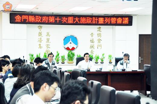 為落實重大施政計畫項目列管,縣長陳福海、副縣長吳成典和秘書長林德恭,昨日與各列管案件主管、承辦人員等,針對「金門自大陸引水案」等五個重大列管案件,進行逐案檢視。陳縣長強調,金門自大陸引水案工程,每一個環節都要扣起來,進度不容落後。 縣長陳福海表示,重大工程推動每個環節不能拖,一定要儘快來做。而在施政推動是在跟時間賽跑,並請各主管在明年是行動年,對列管重大案件一定要掌握期程,勇於面對它。 這項重大施政計畫列管案件簡報會議,係就金門縣自來水廠「金門自大陸引水案」、縣府觀光處「金城鎮停車場案」、教育處「金湖國小校舍改建案」、地政局、工務處「尚義區段徵收工程」及地政局、建設處「金門特定區計畫(金寧鄉安岐閩南建築專用區)先期評估與規劃暨變更都市計畫案」、港務處「金門港水頭客運中心新建工程案」,聽取各相關局處簡報。 縣長陳福海指出,金門自大陸引水案是兩岸合作很重要的一件事,對兩岸建構新思維深具意義,因此,工程推動進度的每一個環節都要扣起來,進度不容落後。 而針對鄉親最為關注的金門自大陸引水案,水廠在報告本案當前執行進度時指出,大陸引水案包括海底管線、導水管、受水池及洋山淨水場四個部份,預定計畫進度34.67%,目前實際計畫進度35.27%。 而有關細部設計審查進度,大陸側海管鋪管細部設計已於8月19日核定。金門端及陸方端陸上設施細部設計仍在審核中,大陸側海管鋪管作業截至10月底已鋪設約7.5km,已接近理論中線位置。而十一月份因受颱風及東北季風影響,海象施工環境不佳,又涉及海管中線鋪設問題,將俟船機申請通過後,再行海上施工。 導水管部份,9月29日水廠核定整體施工計畫及品質計畫書,10月4日工程開工。 水廠指出,目前晉江端海管細設文件雖已核定,惟兩端岸上設施細部設計審查進度有落後情況,針對送審多次細部設計水廠將要求中興審查人員及中宇設計人員來金釐清相關問題,以利工進。 而大陸施工船機及人員申請入金施工部分,經濟部水利署先前召開會議指示,因水利署經濟委員會預算審查時間(9~12月),管控本(105)年度12月底完成提案及程序。屆時如無法完成,請督請廠商啟動使用我方船機及人員,以利工程如期完成。 有關金城鎮停車場案,縣長陳福海請觀光處參考別縣市成功案例,跑一趟觀摩,並找最好規劃公司來規劃,儘量在明年十月底完成開標;預算上可向中央爭取最好。而金湖國小校舍改建案,係金門校舍整體總規劃第一個案子,要朝蓋得最好目標達成,工務處、教育處就要將家長會代表等連接,納入工作小組來幫忙。至於「金門特定區計畫(金寧鄉安岐閩南建築專用區)先期評估與規劃暨變更都市計畫案」,有關新修正之安岐閩專一期區段徵收土地公益性必要性評估報告,則請秘書長幫忙和掌握期程,以在內政部地政司排入105年11月23日土地徵收大會進行報告,一定要確保通過。 另外,有關「尚義區段徵收工程」,縣長陳福海希望地政局和工務處加把勁,以在明年三月份能進行工程動工。至於「金門港水頭客運中心新建工程案」,基本設計送交通部及工程會辦理審議,也要求港務處將每個環節扣好,認真追蹤掌握進度,工程一定要儘快來做。