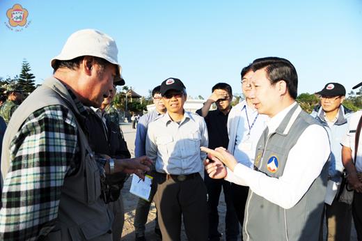 新頭海岸近年來遭嚴重沖蝕,今年莫蘭蒂颱風來襲時,湧浪更一度衝上伍德宮廟前下方廣場,縣長陳福海昨日會同水利署第八河川局代局長許金龍、金管處處長謝偉松、金指部參謀長陳立中等人前往會勘,希望能為海岸退縮、國土流失尋找解決之道。 陳福海等人是在昨天下午四時三十分許,前往伍德宮前的廣場會勘,許多關切海岸流失與伍德宮安危的新頭民眾也前往現場瞭解狀況。當地居民憂心忡忡的表示,大陸盜採海砂問題嚴重,新頭海岸的沙灘退縮近百米,連當年繫船柱的基座都被沖刷而出,嚴重影響景觀與當地信仰中心伍德宮的安危。 對此,陳福海表示,金門的夏張會中縣府也曾提出這個議題,全力爭取盼對岸重視。對於當前海岸流失的問題,希望能分為兩部份來處理,第一個原則是在不破壞生態環境的狀況下,搶修附近的沙岸景觀。第二則是希望水利署與軍方等單位儘速蒐集洋流、海底地型等資料,為未來施作永續的海岸保護工程作準備。 許金龍則回應表示,抽砂問題確實對於金門海岸線造成嚴重影響,除此之外還有溫室效應及海平面上升,這些都有待一步研究證實。金門海岸線退縮是全面性的,除了南海岸的新頭、北海岸的古寧頭等地都有相同問題,考慮到軍艦進出水道等施工問題,水利署將與金管處、環保署等單位研商解決之道,搶救金門海岸線。 金指部參謀長陳立中則表示,目前軍方運用新頭海岸的地段是新頭靠近漁港附近的灘岸,其他並未進行泊船靠港,軍方也將派員進行海底地形勘查,提供相關資料予水利署等單位參考,協助處理海岸流失的問題。