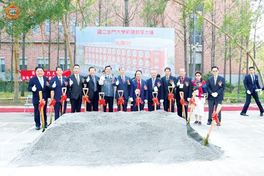 國立金門大學20周年校慶,昨日舉辦新教學大樓規畫興建啟動儀式,副縣長吳成典隱喻辦學就像種樹一樣,需要一草一木持續投入,讓金門大學可以更好,而這也正是金門人的共同願望。金大校長黃奇表示,新教學大樓預定於民國107年竣工營運、使用,屆時可以滿足階段性教學空間需求。 新教學大樓興建動土儀式,於昨日上午九時舉行,由金大校長黃奇主持,副縣長吳成典、金門大學前校長李金振、縣議員陳滄江、海外鄉僑,包括,印尼雅加達金門互助基金會黃進益總主席、王萬權副總主席、Mrs. Yenny Wiriawaty Ng, Mrs. Hunita Wiriawaty Ng, Mrs. Ng Inggrid Wiriawaty Ng, Ms. Endah Rosiana、燕妮、王其耀、李梅花、王月豔、梁天保、張麗蓮、謝永全、莊秀美、陳玉霞、林寶英、郭柳英、楊瑞芳、陳寶華、王秋英、陳官南、陳秀花、徐美蘭、周美玉、謝吉順、陳麗珍、蔡景海、謝秀珍、謝秀祝、李翠麗、李翠霞等鄉僑。巴生雪蘭莪金門會館呂清便主席、署理主席李錫循、婦女部主任李佩雲、教育主任劉志山。新加坡黃章聯夫婦、何國傑。汶萊林國欽僑領。美國鍾賜賢夫婦、呂金泉、李美枝博士、高貞珊、高穗珠、李美枝博士。香港葉貞吟主席。台灣金門同鄉總會總會長李台山、森廣機具公司董事長蔡其雍以及金大師生共同參與活動,為金大20週年慶生活動加溫。 金門大學黃奇校長感謝海外僑親不遠千里返鄉參加金大慶生典禮。黃奇表示,金大早期的教學空間是借用高職校舍,第一棟綜合教學大樓於民國91年完工落成啟用之後,校內各棟建物便逐年逐步完成興建。民國99年改制一般大學,學校有了脫胎換骨之變,學生及師資人數都呈現急速成長。現階段金大已有四個學院、十七個系、學生人數達4,612位,教職員工258位。新教學大樓預定於校區內圖書館旁空地進行興建,基地面積約3,000平方公尺,法定建蔽率50%、容積率200%,實體興建經費預定為新台幣4,900萬元,預計於民國107年竣工營運、使用,屆時可以滿足階段性教學空間需求。黃奇也藉此機會再次感謝金門縣政府、金門縣議會、僑領、僑親、旅台鄉親歷年來給予金大的支持。 副縣長吳成典以親切的閩南語開場致詞,首先代表縣長陳福海歡迎僑親返鄉。吳成典表示,金門地不大、人不多,要辦一所國立大學並不容易,需要全世界金門人共同支持才能成就金大。他也隱喻辦學就像種樹一樣,需要一草一木持續投入,讓金門大學可以更好,而這也正是金門人的共同願望。吳成典也提到金門在醫療及交通上持續推動改善,現階段到台灣、到大陸都很方便,也希望各位僑親能多回來金門走走。 印尼雅加達金門互助基金會黃進益總主席認為一個學校若有新大樓在蓋,表示這個學校還在成長、茁壯。學生、老師在好的環境中求學與教書,也會因此而獲得好的學習與教學成效,這便是工欲善其事,必先利其器的道理。黃進益提到他個人的奮鬥史,透過誠信可以獲得很多人的支持。他指出在創業過程中不斷投資引進新設備、製造新產品、提供新服務,才能維持公司的繼續成長,而學校蓋新大樓的用意跟公司持續投資目的便有異曲同工之妙。黃主席也期望金大能在科技、人文、管理、護理等其他領域的學術發展都能攀上頂峰,吸引更多學子慕名而來學習,成為真正的名校。 與會來賓共同持鍬動土,期望新教學大樓的工程能如質、如期的順利完工啟用,提供師生更好的教學環境。