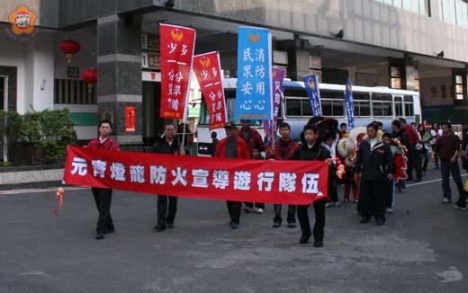 元宵節前夕,金城消防分隊組成燈籠防火宣導隊於昨日在城區各主要街道加強防火安全常識遊街宣導,結合醒獅隊敲鑼打鼓,沿街發放消防安全常識宣導單,熱熱鬧鬧地提醒民眾歡度年節期間不忘防火之重要性,亦盼民眾隨時提高防火警覺,年年平安。 農曆春節壓軸節日元宵節到來,在歡慶氣氛中,常因警覺性鬆懈導致火警頻傳,為使民眾過個快樂又平安的元宵佳節,及加強金城地區民眾防災意識,讓民眾均能熟悉生活上相關消防安全常識,避免因疏忽而引發災害發生,進而危及民眾生命財產安全,金城消防分隊於元宵節前夕精心策劃這項另類元宵節防火安全常識遊街宣導。 金城消防分隊元宵節防火宣導隊由分隊長董必文率隊,成員除了消防隊員尚包括義消分隊長顏及人、副分隊長許績燈、胡允朝、隊員陳世耀、洪榮華、陳文貴、楊俊偉等,及婦女防火宣導隊隊長黃玉嬌、副隊長李玉葉、隊員余秀枝、吳秀治、陳秀香、陳書賢等人,並出動醒獅隊加入,鑼鼓聲充滿過年的歡樂氣息。 參與人員昨日下午每人手提一只狗造型之燈籠並印有醒目的宣導標語,在金城各主要街道沿路進行防火安全常識廣播宣導,並沿街發放消防安全常識宣導單予以民眾,現場進行解說,熱心的民眾還不時對宣導隊伍高喊:『辛苦了!辛苦了!』宣導隊伍浩浩蕩蕩,吸引眾人目光,整個防火宣導活動在民眾心中烙下深刻印象。 此次廣播宣導重點項目包括有:逾期瓦斯鋼瓶辨識、瓦斯漏氣檢測及處理、瓦斯氣爆防治方法、電器安全、爆竹煙火施放安全及易燃液體之使用安全等,於活動進行間,民眾對於消防分隊的作法表示認同及讚賞,也有民眾還提出許多日常生活中常遇到問題詢問,消防同仁非常熱心針對民眾疑惑一一進行解答,使民眾獲益良多。 董必文表示,防災工作需要靠大家共同來推動,單靠消防單位微薄力量成效相當有限,也期盼透由此活動能讓民眾提高防災意識,廣植消防種子,使民眾均能成為消防專家,並藉以提醒民眾歡度年節期間不忘防火之重要性,並能時時提高防火警覺,大家平安過新年。
