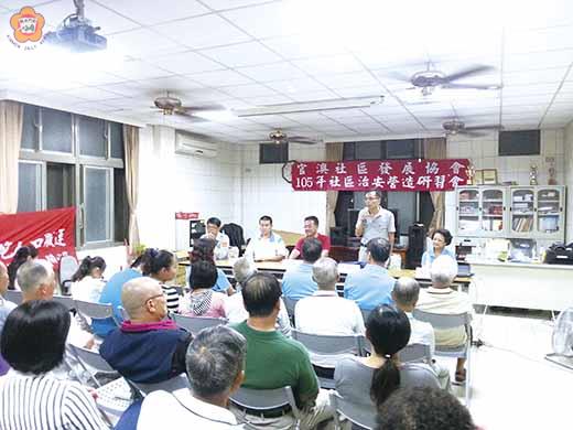 金沙官澳社區召開「105年度社區治安會議及治安營造研習」,金湖分局派員宣導治安、交通、消防等生活相關議題,當地居民對於日前住宅內財物遭竊而金沙分駐所迅速破案,給予肯定。 金沙鎮官澳社區日前晚間於官澳社區活動中心召開該社區105年度社區治安會議及治安營造研習。會議由社區理事長楊世宏主持,總幹事楊增祺列席,消防局金沙消防分隊、縣警局防治科、金湖分局等單位均派員與會,與社區民眾共同討論有關治安、交通、消防等生活相關議題,社區民眾60餘人參加會議,場面熱絡。 治安會議時,民眾提出近期住宅內財物遭竊而金沙分駐所迅速破案之經驗分享,並建議社區能成立守望相助隊,政府單位能予以補助,而由居民共同出力來巡守家園,避免再次發生竊盜案件。 社區治安營造研習安排由金湖分局組長廖建棠講授「家庭暴力與性侵害防治」、「騎乘機車安全探討」,金沙消防分隊隊員王玉鑫講授「CPR操作及滅火器使用」,使民眾能瞭解有關社區治安的新知,與會民眾深感獲益良多。