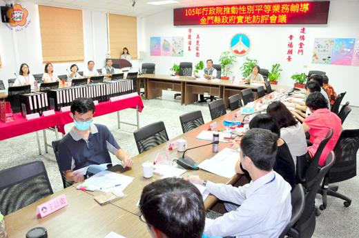 行政院105年辦理直轄市與縣(市)政府推動性別平等業務輔導獎勵計畫,由行政院性別平等處處長黃碧霞領軍,昨日抵金門縣政府實地訪評和舉行考核會議。在會議中,黃碧霞表示現在是讓女性多參與、女性資本能充分發揮;若男女資本皆充分發揮,可以提升國家國力。所以,在此基礎上,希望性別平等能廣泛推動,讓女性女力能充分展現出來,對國力提升和經濟發展、競爭方都會好! 這項性別平等業務訪評考核會議於昨天下午二時,假縣府大禮堂舉行,由副縣長吳成典、行政院性別平等處處長黃碧霞共同主持;與會人員有行政院性別平等委員會委員林春鳳、王介言、吳明儒;行政院性平等處科長陳嘉琦、諮議黃怡蓁、科員陳佳妏,以及金門縣政府社會處處長甯國平、教育處副處長陳金文和相關處局人員參加。 吳成典致詞表示,金門有三項活動包括馬拉松、海上長泳、自行車是秒殺的;有一次主持馬拉松會議發現男子組第一名獎金二十萬,女子組第一名獎金十萬元,並說金門要走國際化,男女獎金怎可不同;雖然男女參賽人數不同,第一名獎金仍要一樣,今年元月份的馬拉松男女第一名獎金都是二十萬元,體現在性別平等的主流化和觀念。另,對於婦女參與政治或是從政,吳成典認為也應該多給予機會,有不足的地方來改進,並全力配合推動性別平等業務和努力做好。 黃碧霞表示,行政院過去四年做了性別平等培力,希望實地了解各縣市辦理推動性別平等情形,以及如何提升及推動;希望在此基礎上,性別平等能廣泛推動,讓女性女力能充分展現出來,對國力提升和經濟發展、競爭方都會好!同時,她對於金門縣政府性別平等區塊成立婦權會、做了性別主流化計畫和開始推動,已有一個好的基礎,表示肯定。 接著在金門縣政府105年度性別平等業務考核簡報內容,主要有基本資料,以及評審項目包括基本項目、性別主流化實施情形、進用所屬機關首長、本機關女性主管人員、簡任非主管、委員情形及女性中高階主管訓練情形;辦理性別平等宣導情形、鼓勵督導所屬機關/單位、鄉鎮市區公所或人民團體、民間組織與企業推動性別平等之方式,以及加分項目,並進行資料檢閱及人員訪談、綜合座談之議程。 縣府表表示,本縣多年來相關單位持續推動性別平等主流化、性別教育平等、性騷擾防治、消除性別歧視等工作促進性別平等。縣府於民國96年設置金門縣婦女福利促進委員會、今年修正為金門婦女權益促進委員會,委員會任務之一即是關於性別主流化之促進、協調及推動事項,委員單一性別比例依規定不低於三分之一,促使性別平等落實推動執行。 縣府表示,本縣每年積極規劃辦理各項性平意識培力課程,婦女團體培力、婦女領導人培力等廣邀婦女團體及其領導人參與培訓,俾扶植婦女團體參與公共事務,倡導性別平等意識。而且,縣府積極辦理性別主流化工作,為強化性別意識教育與平等觀念,致力性別平等宣導,並能在各機關、學校基層扎根,以及利用辦各項教育研習活動行性別統計分析,落實性別主流化政策。
