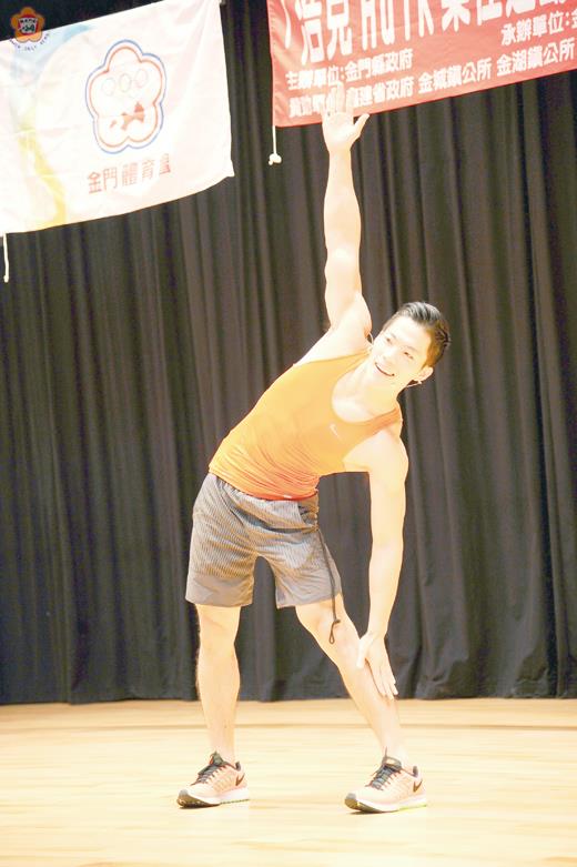 由金門體育會舉辦的健康健身教學活動昨日於金湖體育館盛大登場,活動吸引上百名地區民眾熱情參與,以健身打出名堂藝人浩克Hulk(陳弘璟)出席擔任教練任務,眾人在浩克帶領下進行健身體操運動,渡過一個充實又健康的週末! 這場活動是在昨天下午二時於金湖體育館室內籃球場舉行,體育會理事長李金贊、總幹事鄭清南等人也出席參與,李金贊在致詞中感謝縣政府指導主辦,以及福建省政府、金城鎮公所、金湖鎮公所、金沙鎮公所、金寧鄉公所及昇恆昌的贊助,他並感謝陳弘璟接受金門體育會的邀約,帶領更多的民眾可以接觸健身運動並且保持健康的體魄。 陳弘璟則在接下來的活動中,帶領學員進行百人健身活動,帶著自創健身品牌「突破健身」課程與地區民眾分享。陳弘璟表示,現代人因為工作忙碌沒有時間運動,導致身體健康每況愈下,身為運動員與健身教練的浩克,自創了一套隨時隨地都可以保持運動的循環訓練方法,希望讓想要運動的人可以不要受到環境的限制,依舊可以持之以恆保持運動。 訓練課程以十二個動作組合,內容包含心肺訓練、肌力訓練、敏捷訓練、協調訓練、活動度訓練,透過較短的休息時間及不同動作的變化,讓心跳率保持在一定刺激的程度,讓現場學員燃燒更多的熱量。 據瞭解,曾在金門服役的陳弘璟於金門防衛指揮部的健身中心服務,此行特別感謝金門的人、事、物,目前陳弘璟是名人健身教練,也是名歌手周杰倫的世界巡迴演唱會時的御用健身教練,多次不辭辛勞遊走亞洲各地的電視、廣播節目,以及各大學和企業間,大力推廣健身,指導大家避免錯誤的健身方式,甚至不必去健身房更能持之以恆的健身,活得更健康。