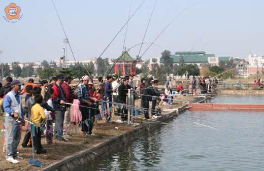 「大家新年好」!昨天是正月初一,縣長李炷烽、夫人吳麗鳳特別走訪農林漁牧防疫等所,向參與新春活動的鄉親們賀節,也向貢獻良多的各單位致意。 陪同縣長李炷烽伉儷的包括建設局長李增財、機要秘書許加發等人。李炷烽首先前往水試所,稍後又轉往林務所、農試所、防疫所、畜試所等處,向鄉親賀節、與民眾同歡。許多鄉親看到縣長伉儷,紛紛趨前互道「恭喜發財」、「新年快樂」。 為和鄉親共度佳節,縣府精心準備「九十五年迎新春農業展」活動,自一月二十九日至三十一日(農曆正月初一至初三日)止,陪大家過新年,內容計有: 金門縣水試所|水族教育館(魚類模型展示、特展區、水族觀賞)、海洋生態影集欣賞、海洋生物標本及圖展、漁具漁法模型展示、魚拓版畫活動、親子戲水活動、塭釣垂釣活動、趣味賽魚活動、鮮粥品嚐活動、水產加工品推廣展售 金門縣農試所|農家生活體驗及趣味活動、遊園之美|試驗作物展示、品嚐鄉土美食及烤番薯活動、金門農特產品展售。 金門縣林務所|與DIY有約|親子教育活動、藝術壓花、彩繪、「萬紫千紅、百花齊放」、「綠之回顧與展望」。 金門縣畜試所|親身體驗(比手劃腳、快來找碴、運動筋骨、與豬同樂、畜產大團圓DIY活動、自費烤豬DIY)、畜產品展售、乳品品嚐、金門畜牧發展資料館展、可愛動物展、園遊會活動。 金門縣動植物防疫所|可愛動物認養、動物保護宣導活動、狂犬病疫苗預防注射、防檢疫業務展示之旅。 昨日天氣放晴,一早就有許多鄉親湧往農林漁牧防疫等所,參與縣府為鄉親準備的新春農業展系列活動。小朋友們穿新衣、戴新帽,有的穿著中國式衣裳,有的身著異國服飾,拿著紅包、抓著彩色氣球,全家人開開心心出遊,共享難得的新春長假。 為讓鄉親滿載而歸、年年有「魚」,水試所在所內養殖水塘內,施放不少鮮活大魚,許多鄉親起早佔好位置,等著各色鮮魚上鉤,許多人提著大桶小桶的漁獲,樂不可支,小朋友則你推我擠看鮮魚、湊熱鬧。 撈金魚的小池邊,則擠滿「虎視眈眈」的大小朋友,小金魚稍有不慎,便成了網中物。 水試所還準備大鍋爐烹煮鮮魚粥,讓遠道來的鄉親們嚐鮮、裹腹,此處人氣最旺,人多,東西好像也特別好吃,吃飽了,繼續釣魚,或是到水族館歇歇腳,欣賞生態影片,都是一大樂事。 農試所的鄉土美食、烤地瓜,人氣也搶搶滾,親朋好友共聚,回味童年熱騰騰的蕃薯美味;林務所的花花世界,美不勝收,許多鄉親往返於花田間,以相機記錄新春歡樂行腳;畜試所的鮮美乳品,格外搶手,可愛動物,最受歡迎;防疫所的防疫新知、宣導活動,則讓鄉親收穫匪淺。各所都是扶老攜幼看熱鬧的鄉親,到處洋溢歡笑聲,新春全家行,快樂趁現在。