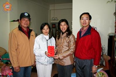 昨日是除夕,正當家家戶戶忙著準備過新年,烈嶼鄉厚生慈善會理事長洪麗萍偕同該會常務監事洪振順,在金寧鄉長李文俊的陪同下探慰莊宏生等二戶急難戶,各贈送一份慰問金,表達賀節的關懷之意,讓受慰者窩心不已。 昨日下午二時許,洪麗萍專程到大金門來送溫暖到金寧鄉二戶急難戶莊宏生、彭幼璇、以及金城鎮的董振發,祝福他們也能如同鄉親一樣高興的過新年。 金寧鄉長李文俊相當感動也是議員的洪麗萍,於除夕忙碌的日子,還專程到大金門來關懷急難戶,他親自的陪同到三位受慰者家中送紅包,祝福他們新年快樂。 洪麗萍表示,厚生慈善會的主要經費來源,是在創會會長蔡清良的全力支持,及理、監事和會員的熱心捐款配合下,讓會務順利的推展,六年多來,積極投入社會福利工作,協助弱勢、救助貧困,希望發揮「雪中送炭」救助急難的一份力量,服務的觸角也由小金門擴大到全縣,未來還會持續的做下去。 連任該會理事長的洪麗萍,更是全力的投入服務的工作,每一次受慰的對象,一改以往由鄉鎮公所提供列管的慰助對象,她認為這些受慰者,經常性的受到政府資源和各界的關懷照顧,但是有一些鄉親卻因突發性的遭遇變故,或是緊急急難的事故,更需要濟助,也是該會主要慰問的對象,以對生活稍獲濟助。她表示,縣內鄉親如有發生急難事故,需要幫助,可聯絡她本人或是該會幹部前往協助慰問,聯絡電話:363339。
