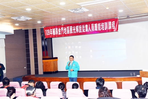 新冠肺炎重創各地經濟,隨著「小三通」的暫停,金門觀光產業更是雪上加霜,為協助業者撐過這一波疫情寒冬,金門縣政府除了成立「觀光產業紓困諮詢辦公室」,也規劃了二梯次觀光解說從業人員職能培訓班。昨第一梯次課程正式開班,縣長楊鎮浯特別到場為學員加油打氣,也期許大家,這項職能訓練不只是因應疫情,更希望趁著這段抗疫空淡季,提升優化在地觀光產業的品質,並為第一線從業人員帶來實質的助益。 楊鎮浯不諱言,「小三通」暫停是基於疫情發展、社會恐慌及兩岸關係等多方考量下的選擇,在整體防疫過程中,更不只考量專業衛教防疫這一塊,來自社會要求穩定,希望人心安定的強大聲音,才是促成「小三通」暫停的主因,而這個「痛苦」的抉擇,對產業結構單一、缺乏大型支柱產業的金門影響尤大。 也因此,面對愈趨嚴峻的新冠肺炎疫情,這段期間,他特別要求團隊要分三階段來因應,藉以減緩疫情對產業造成的衝擊,包括第一階段「疫情中」,以紓困為主;第二階段「疫情後」,推出「1+1振興券與觀光消費券」等方案,加速刺激景氣;第三階段則希望透過長期輔導,讓在地觀光體質更健全,職能更完備。縣府觀光處指出,「金門地區觀光解說從業人員職能培訓班」是縣府因應「新冠肺炎」所推出的紓困職能訓練計畫之一,完訓後符合資格學員並可請領縣府「服務到家」的津貼補助,昨第一天課程,上午安排陳錦玉講師講解「餐飲及接待禮儀」,下午則由張梨慧講師示範解說導覽實務。 觀光處表示,「新冠肺炎」疫情持續在全球各地延燒,為阻絕疫情蔓延國境,中央自2月10日起宣布暫停「小三通」營運,確實對金門觀光旅遊市場造成嚴重衝擊;為與地區業者攜手度過景氣寒冬,該處特別成立「觀光產業紓困諮詢辦公室」,協助民眾即時了解政府各項紓困政策與申請方式,並規劃多項振興方案,希望協助在地觀光產業渡過難關。 此外,導遊與解說人員是觀光產業的最前線,也是疫情衝擊的第一線,在疫情蔓延的旅遊空窗期,為增進產業從業人員職能,觀光處也從昨(19)日起至4月1日止,分二梯次精心規劃一系列培訓課程,藉以增進地區觀光產業競爭力,也為未來觀光市場回春之際,提前作好充足準備,希望進一步提升金門觀光旅遊服務品質,及營造優質的旅遊環境。