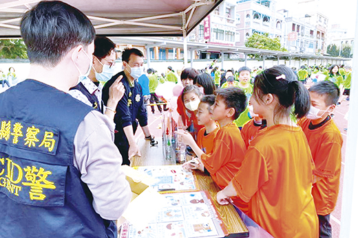 為強化多元管道宣導少年及婦幼安全,向下扎根建立全方位安全意識,縣警局少年警察隊於昨(21)日應本縣中正國小邀約,至中正國小辦理少年、婦幼人身安全各項宣導,與中正國小一起慶祝「105週年校慶園遊會活動」。 縣警局少年隊由隊長李鑫鍇帶隊,特將反毒、反霸凌及兒童自我保護等觀念,於宣導活動中以淺顯易懂的有獎徵答闖關互動方式加強學童自我保護意識,以防禦被害,於未來在面對危險情境時,能夠有所警覺,即時尋求警察、師長及父母的協助並且勇敢拒絕。 少年隊不僅提醒學童「小心陌生人」,也告訴學童身體自主權之觀念,提醒學童「保護自己,尊重他人」,不隨意碰觸他人的身體外,並提醒新興毒品型態多樣,少年隊更使用仿真新興毒品(包括毒巧克力、毒糖果、毒果凍等),向現場約600餘名學生們解說毒品的危害,教導學童「識毒」,提醒學童拒絕並遠離毒品。 另因疫情關係,尚有許多無法至現場參與之家長及民眾,縣警局亦藉由臉書同步線上直播,希望能與大家共同守護孩童並維護校園安全。