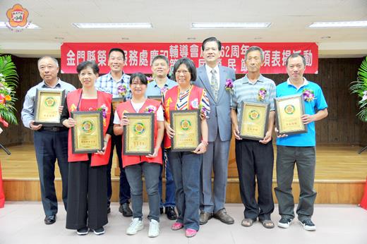 昨日恰逢輔導會成立62週年暨38屆榮民節,金門榮民服務處於金湖鎮公所舉辦慶祝典禮與表揚活動,表彰榮民對國家社會之貢獻,地區榮民踴躍出席、場面熱鬧非凡,金門榮服處處長葉慶聰也期許透過榮民模範的表揚,讓更多人見證榮民對國家與社會的付出,肯定榮民們的努力與奉獻。 這場表揚典禮是在昨天上午十時整,於金湖鎮公所三樓會議室舉行,由金門榮服處處長葉慶聰主持,現場出席貴賓包括縣府參議許寬、縣議員李應文、金城鎮長石兆瑉、金湖鎮長蔡西湖等人,地區榮民朋友們更是熱烈與會,共同響應一年一度的榮民節活動。 典禮一開始,榮服處特別邀請榮民徐明哲先生以洞簫、二胡及笛子等獨奏陽明春曉等名曲,緊接著則由葉慶聰頒獎表揚榮民模範、金湖區陳家興先生、金沙區黃克溫先生、金城區李翌漳、金寧區洪學文先生、烈嶼區林益先生等五人及績優榮欣志工金湖區林根枝女士、金寧區蔡素芬女士,新進績優榮欣志工金城區唐麗春女士,另外績優榮欣志工金沙區何秀貞女士、烈嶼區陳海頂先生則由該會推薦輔導會表揚。 葉慶聰隨後在致詞時表示,榮民節活動傳承「忠貞、團結、誠樸、開創」的榮民傳統精神,此次榮民節亦適逢輔導會成立六十二週年,他希望未來該會能秉持照顧榮民榮眷服務精神,做好就業、就醫、就學、就養及服務照顧等工作,妥善照顧服務榮民先進。 葉慶聰指出,九十年八二三戰役金馬自衛隊成員納入榮民體系後,地區榮民人數遽增,今年619戰役自衛隊及第二類國軍退除役官兵又奉准納入服務照顧對象,該處雖全力致力於服務照顧榮民,惟因人力、資源不足,為能妥善照顧地區為國犧牲奉獻之榮民,提昇生活品質,將加強榮欣志工隊效能,並協請政府各公部門奧援協助。 該會也特別感謝金門各界的慈善團體、社團法人,協助該會建構服務資源網絡,其中包括金門縣政府、省政府、金門縣紅十字會、金門國家公園管理處、金門酒廠、金門防衛指揮部、華山創世基金會等相關單位的支持與協助,讓地區榮民眷的服務照顧工作能更臻完善。