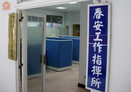 今年春安工作從昨(十四)日凌晨零時起,到下(二)月十二日晚間十二時,為期一個月,配合春安工作開跑,金門縣警察局提前於十三日中午開設「春安工作指揮所」,由縣長李炷烽擔任指揮官,統合協調運用警察、憲兵、協勤民力,及結合守望相助巡守組織,嚴密勤務部署,強化犯罪偵防、穩定社會治安,加強交通疏導與交通安全維護,積極為民服務等作為,讓民眾平安歡度春節。 本(元)月二十九日就是農曆春節了,縣警局今年以「確保社會治安、維護交通安全、加強為民服務」為主軸,加強包括保護民眾存、提款安全、防制酒後駕車、加強防搶、防竊、交通疏導與安全維護、預防詐騙宣導、保護青少年、幫助失蹤人口回家團圓,及提供舉家外出巡邏服務等春安重點工作,要讓鄉親安心過好年。