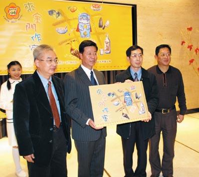 縣長李炷烽昨午假台北誠品信義店舉辦兩萬冊︽來金門作客︾贈書活動,雖然遇上冷冽寒流,台北誠品信義店三樓卻滿室溫暖,不僅飄蕩著孩子童稚的歌聲,還充滿著溫馨與書香。 昨日下午三時,縣長李炷烽將兩萬冊︽來金門作客︾送給教育部與僑委會,以及金車教育基金會、毛毛蟲基金會等團體。教育部國教司司長陳明印等人蒞臨擔任接收人,金門縣文化局長李錫隆等人也到場參加。 活動由聯經出版公司籌辦,新店大豐國小合唱團協助,現場充滿溫馨與書香味,不僅將書送給全國2646所小學,每校圖書室5冊;500本交由僑委會送給僑胞僑民;300本送給台北市立圖書館;其他還包括金車文教基金會、毛毛蟲基金會等團體。另外,現場也舉辦了金門名產品嚐大會,計有貢糖與高粱共十種,活動十分圓滿成功。 李炷烽表示,金門縣政府透過兒童文學作家、插畫家的眼睛及畫、筆,出版了︽來金門作客︾繪本,這本書不僅是一本老少咸宜的讀物,一出版即入選「好書大家讀」,好評不斷。他很高興,能藉由一本兒童書將金門行銷出去。希望大家看了這本書,一起到金門作客。 李炷烽指出,金門是一座可愛的島嶼,有許多特別的歷史與景觀,例如金門雖只是小島,但有多達兩百八十種鳥類,是賞鳥的天堂;金門有很多傳統建築保留中華文化特色;金門還是一處擁有五十年歷史的昔日戰場,地下的戰地金門更值得參觀,比法國馬其諾戰線更堅強。 李炷烽希望透過「來金門作客」這本繪本,讓全國小朋友都能體會金門之美,更希望各國小能帶學生到金門畢業旅行,實地感受金門的風土民情。 教育部國教司司長陳明印則指出,教育部近年來推動閱讀不遺餘力,主因在於閱讀是開啟智慧之鑰,更能彌補教育貧富及城鄉差距,比補習還有效。他舉例,曾有一名台東的小朋友,一年讀了八十幾本書,結果國語科成績突飛猛進,每次考試都接近滿分,其他科目也明顯進步。 陳明印說,陽明大學教授洪蘭研究指出,閱讀中的孩子,大腦的核磁共振造影不斷改變,沒閱讀的孩子腦造影則是靜止不動,顯見閱讀能刺激腦部發展。他希望金門縣政府及聯經出版社繼續出版類似的繪本書,更期許聯合報系的報紙能開闢兒童版,刊登兒童的讀書心得。 入選「好書大家讀」、由金門縣文化局出版的兒童繪本「來金門作客」,係是在金酒公司贊助下,加印二萬本分送台灣各界。 該書係金門縣文化局於民國九十四年策畫,委由聯經出版公司邀約數位兒童文學工作者來金,共同製作「來金門作客」繪本。透過兒童文學工作者的文字與彩筆,將金門特殊的風土民情、人文史蹟及自然景觀,生動地描繪出來。由四位風格各異的插畫家共同繪製,其中,余麗婷畫風充滿童趣;劉伯樂擅長寫實;劉素珍以工筆、漫畫見長;官月淑則以溫暖色彩展現鄉土情懷。另外,再由林淑玟、陳月文以生花妙筆做文字撰寫,充份呈現金門美好的島地風光、人文故事。 縣長李炷烽在該書序中指出,「金門,曾經是戰地堡壘,如今已經成為一座『海上公園』。現在,只要踏上金門的土地,看到的是:耀眼的藍天、隨風搖擺的高粱、威武站立的風獅爺、紅瓦燕尾馬背的古厝,以及奧妙的生態。吃在嘴裡的是:甜甜的貢糖、鮮美的蚵仔麵線、香脆的沙蟲,還有各式各樣、透出高粱酒香的風味小吃。尤其深刻的是:濃濃的人情味。每一個來到金門的人,可能懷的是作客的心情,卻有了回家的感覺。歡迎來金門作客;用眼睛觀察、用心感受,金門的過去和現在」。 該書出版後,不僅小朋友喜歡,知名作家阿盛也在聯合報讀書人專刊中,以專文推薦,並且還入選「好書大家讀」,好評不斷。