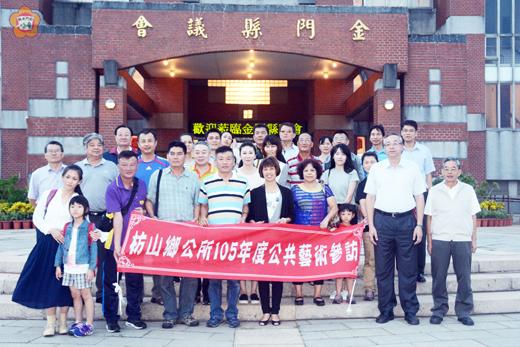 屏東縣枋山鄉公所與調解委員會組團來金進行觀摩考察活動,昨日在鄉長洪啟能、調解會主席潘龍賓帶領下前抵金門縣議會拜會,議長洪麗萍、副議長謝東龍也歡迎大家常來金門進行交流參訪,同時也希望回去後大力為金門高粱酒推銷。 屏東鄉屏東縣枋山鄉公所與調解委員會觀摩考察團一行近三十人,由鄉長洪啟能、調解會主席潘龍賓領隊於昨日抵金展開三天二夜觀摩考察活動,昨日下午四時五十分許抵達縣議會,受到議長洪麗萍、副議長謝東龍、議會秘書長李增財、議事主任陳勵志、人事主任呂清富、會計主任汪秋明、秘書朱國華、呂世忠、專員駱國良,及議會同仁的歡迎。 議長洪麗萍並引領訪賓參觀議事廳,介紹金門縣議會開會情形,歡迎大家常組團來金門旅遊、參訪交流。 副議長謝東龍陪同訪賓欣賞議會多媒體簡報,他在致歡迎致詞時指出,來到金門一定要來縣議會,因為議會是金門最高的民意機關,此次大家來訪,因為金門才經過莫蘭蒂風災蹂躪,正進行災後復建工作,很多景觀的復建都還在進行,全島預計要一年的時間來進行初期的整理,而重建工作可能需要十年。 他也指出,金門是很好的地方,來到金門參訪會愛上金門,愛上金門的好環境、愛上金門的好客情、愛上金門的高粱酒。 謝東龍副議長也熱心為訪賓協調安排今(二十)日前往金酒公司參觀,他說,金門高粱酒是金門的經濟命脈,財政最大支柱,金門福利政策是靠金酒,希望大家多多購買金門高粱酒,回去後協助金門大力推銷金門,讓金門財政更好。 鄉長洪啟能指出,屏東縣經過二個颱風的摧殘,受損情形比金門還嚴重,而屏東的財政遠不及金門,此次與該鄉調解會來金門考察,希望藉由觀摩更瞭解金門,作為該鄉發展觀光的借鏡。