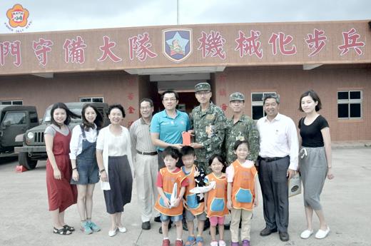 莫蘭蒂颱風造成學校災損,金門守備隊機械化步兵營協助金鼎國小校園復原,金鼎國小校長蔡雪芳、家長會長林俊、名譽會長翁明志等人在金寧鄉長陳成勇陪同下,於昨日上午前往機步營致贈加菜金二萬元,幼稚班兒童贈製作感謝卡片感謝大家的辛勞,由機械化步兵營營長陳欣祺代表接收,校長蔡雪芳感謝國軍弟兄熱心協助校園災後復原工作,迅速完成校園各項搶救任務,讓學生在中秋節假期後恢復正常上課,彰顯軍民一家、同心團結復建家園之精神。 莫蘭蒂颱風造成金門全島嚴重損壞,地區國中小校園亦難幸免,校長蔡雪芳親自投入並鼓動教師和動員社區及相關資源救災,讓校園盡快恢復原貌,以免影響了學生的受教權益。另積極聯繫金門守備隊機械化步兵營及金寧鄉清潔隊支援人力協助校園進行災後搶救工作。 金鼎國小為答謝金門守備隊機械化步兵營熱心鼎力協助此次莫蘭蒂颱風災後緊急搶救復原工作,得以迅速完成校園各項搶救任務,讓學生在中秋節假期後恢復正常上課。校長蔡雪芳特偕同國小家長會長林俊、名譽會長翁明志及學校老師、幼生,並在金寧鄉長陳成勇陪同下親至機步營致贈加菜金二萬元及感謝卡以表達謝忱,並感謝大家的辛勞。由機械化步兵營營長陳欣祺代表接受,政戰處長劉力維及官兵弟兄多人陪同在場。 除了地區學校贈送感謝牌感謝救災有功的單位和人員,金寧鄉公所日昨舉辦一項「莫蘭蒂風災復原感恩餐會」,宴請救災有功的單位和人員,感謝他們災後不眠不休地為地區災後復原,並頒發感謝牌表揚協助災後復原的單位,以及幾位重要有功人員。分別是金門守備大隊機械化步兵營全力協助公所救災事宜約1500人次、金門縣佛教會捐贈救災經費貳萬元,捐贈救災物資廠商包括有常福建設股份有限公司、利德商行、盤山廣濟廟、麥斯西點麵包、金城聯股份有公司、金門縣紅十字會、金門縣民眾服務社、旨佑麵線、環球世達保險經紀人股份有限公司。 陳成勇也表示,他對參與這次莫蘭蒂風災救災工作夥伴,致上最高謝意,大家辛苦了。陳成勇說,莫蘭蒂颱風的威力,是繼丹恩颱風後侵襲金門最強的颱風,颱風過後,非常感謝所有鄉親都能夠共體時艱,尤其是金防部,阿兵哥們全力投入災後復原工作,向他們致上最高敬意與謝意。 陳成勇除了感謝這麼多單位協助,尤其是縣府的全力支持,致力災後復原的心力,鄉親都看在眼裡,而各單位、金防部、清潔隊與廠商也都發揮同舟共濟的精神,投入人力物力,令人感到溫暖與敬佩。