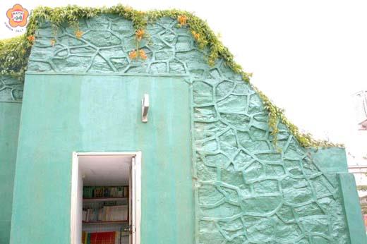金門地區的防空洞或兩用堡,一座座遭到拆除,安瀾國小卻把校中的防空洞改成教具室,陳列教學用的書籍和教具。 這座防空洞不用迷彩,純用綠色的油漆粉刷,上面植有橙色的鞭炮花,花開正豔;洞身有蜂窩狀的紋路,成了頗具特色的建築物。 最重要是,防空洞的穴中不再「空洞」,它裝滿了增長智慧的道具,防止小朋友們腦袋空空或教師們腹笥窘窘。 它不再是防空洞,而是防「空洞」!