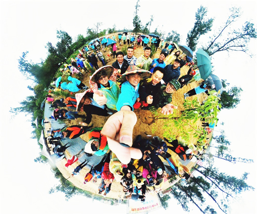 「讓我們一起在地球上種樹」林務所植樹節活動,出動全景相機,以小行星模式,邀縣長楊鎮浯與現場貴賓合影(如圖),表達地球只有一個,我們都居住在這顆星球上,保護地球責任重大,希望你我一起種下的每一棵樹,能與環境一起共好。這樣的設計十分切合活動,成功創造話題,也獲得各界迴響! 林務所表示,伴隨氣候變遷加劇,種樹、保護地球已不只是概念,而是全球運動。植樹節雖只是單日活動,但希望友善環境,與環境共好的觀念能深植於心中。故透過這樣的設計,讓你我在植樹前後適合種植樹木的季節,用行動一同播下保護地球的希望種子,以種下的每一棵樹,和它一起共好。除了藉以增加植樹節的趣味性,也讓大家了解植樹對環境的重要性,進而能在生活中為自己生長的環境,付出一份心力,讓金門環境永續。