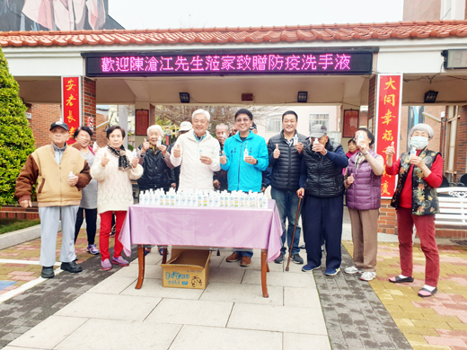 地區藥局業者協助地方防疫,前議員陳滄江昨日代為將這批乾洗手液、護目鏡等物資分別轉贈給大同之家、金城幼兒園、金門縣警察局金城分局等單位,希望讓這批物資做更有意義的利用。 陳滄江表示,地區的藥局,大山藥局以及大賀藥局,長期以來都會贊助小板凳工作室的各項公益活動,日前店長致電表達有一批防疫藥品,打算送給地區單位作為防疫之用;另還有一批護目鏡也打算送給警察單位,因現在疫情搞得人心惶惶,而第一線警察人員在進行酒測勤務時,與民眾需要近距離接觸,因此護目鏡對其是很重要的配備。 陳滄江說,大山、大賀藥局長年以來對於地區公益活動十分支持,因此他十分樂意幫忙代為贈送給地區有需要的大同之家、金城幼兒園以及金城分局。 陳滄江昨日贈送的防疫物資,分別是送給大同之家一百瓶乾洗手液,金城幼兒園則是致贈兩百五十瓶乾洗手液,另有一百只護目鏡,則是送至金門縣警察局金城分局。 收到一百瓶乾洗手液,大同之家主任楊志斌代表感謝陳滄江與大山、大賀藥局,楊志斌表示,經歷過SARS之後,大同之家對於這次的肺炎疫情抱持謹慎態度,並且及早布局,針對會客家屬一律安排在大廳,另出入者皆需要由警衛人員測量額溫,同時要求以酒精進行清潔才可進入,目的就是為了盡量做到最大限度防範。