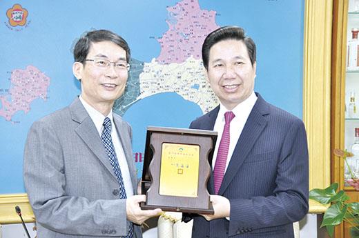 金門縣政府主計處處長杜世萌即將榮調行政院原子能委員會主計主任,縣長陳福海對於杜處長一年兩個月任內,配合縣政施政的作為與貢獻,昨日上午特別頒發榮譽縣民證以示表彰,並表示杜處長是讓我們可以懷念的主計處長,歡迎他有空常回金門走走和指導。 陳縣長昨日上午十時十五分許,在縣長室接見即將榮調的原縣府主計處長杜世萌,並頒贈榮譽縣民證以茲表彰。在場觀禮的有縣長辦公室主任陳永明、民政處長陳世保、科長許慧婷、主計處科長梁惠綾、陳瓊端、翁慧玫。 杜世萌獲頒榮譽縣民證,具體事蹟有: 一、督導辦理金門縣普通公務單位會計制度之一致規定研訂事宜,圓滿完成任務,著有績效。 二、督導辦理金門縣105年度總預算編製事宜,圓滿達成任務,並著有績效。 三、督導辦理金門縣104年度總決算暨附屬單位決算編造事宜,工作辛勞得力。 四、督導辦理金門縣106年度總預算編製事宜,圓滿達成任務,並著有績效。 五、籌措調度「莫蘭蒂」颱風災損經費事宜。 杜世萌是於去年八月由林務局任內轉調金門縣政府主計處長,從基層歷練起的他,公職服務年資長達32年,秉持嚴謹而不嚴苛的任事態度,在法所容許的範圍內衡情量理,做好本份的工作,為縣府團隊作出貢獻。